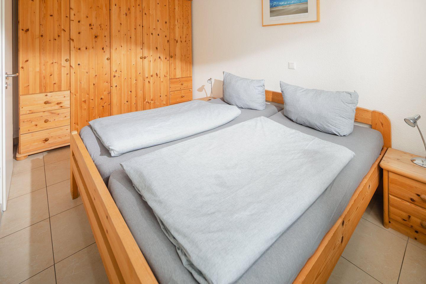 Das Schlafzimmer verfügt über ein Doppelbett, zudem finden Sie auch hier einen großen Flachbildfernseher.