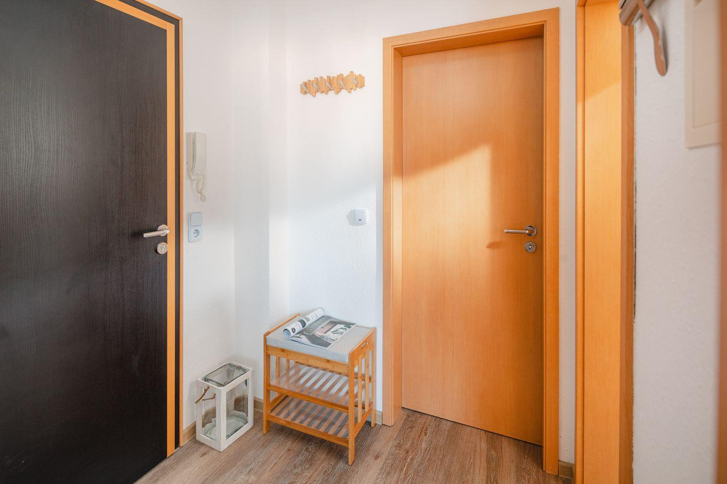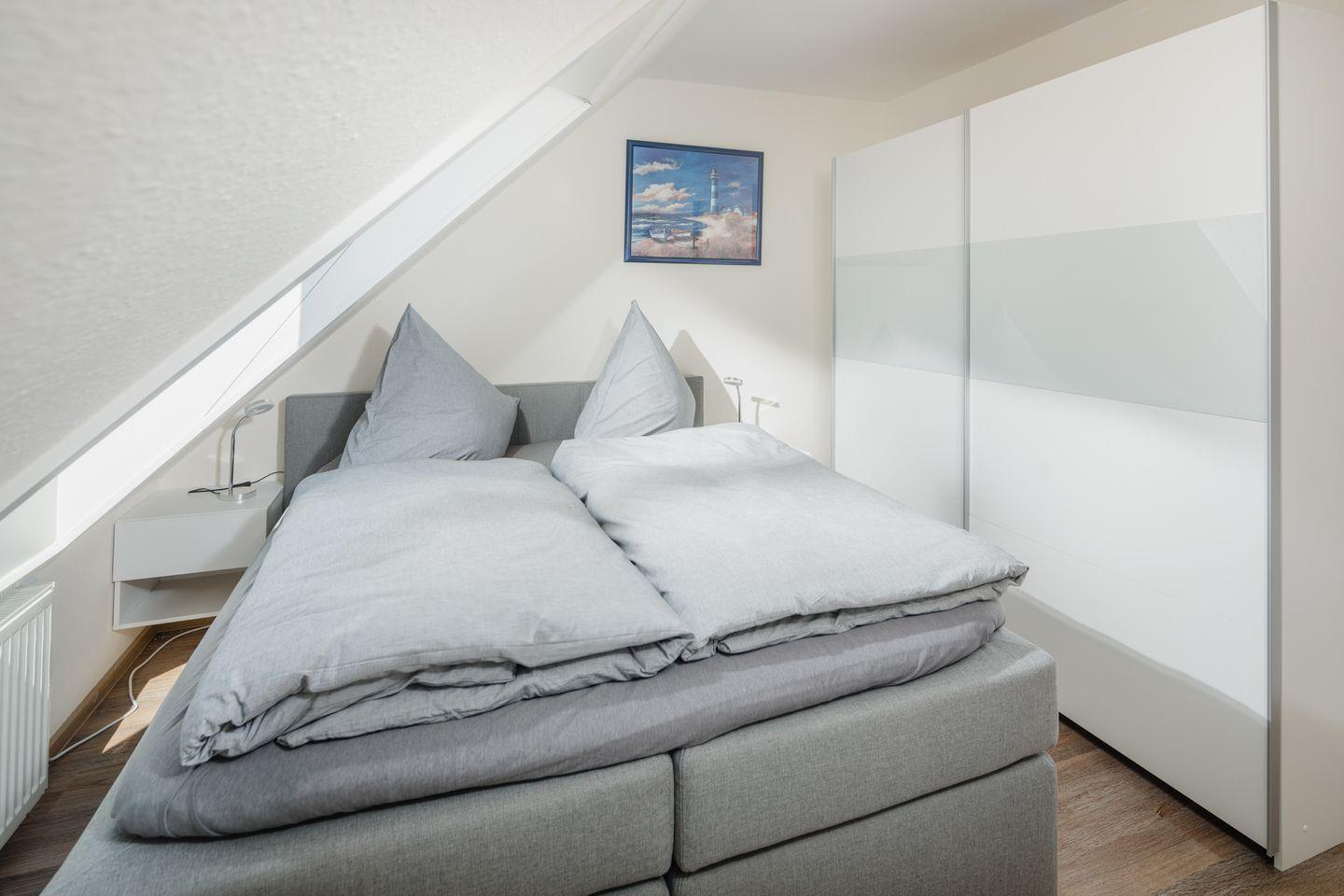 Im Schlafzimmer gibt es ein großes, bequemes Boxspringbett (160x200cm) und einen großen Kleiderschrank für Ihre Urlaubsgarderobe.