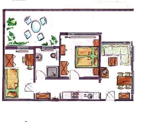 Genießen Sie die gemütliche Atmosphäre des hellen Wohnzimmers, das mit einem Sofa und einem TV ausgestattet ist, um nach einem ausgiebigen Tag am Strand entspannen zu können. Der direkte Zugang vom Schlafzimmer zur Terrasse lädt dazu ein, die frische Meeresbrise zu genießen. Ihre Kinder können sich im Spielebereich vergnügen oder mit den bereitgestellten Kinderspielzeugen spielen, während Sie auf der Terrasse entspannen.
