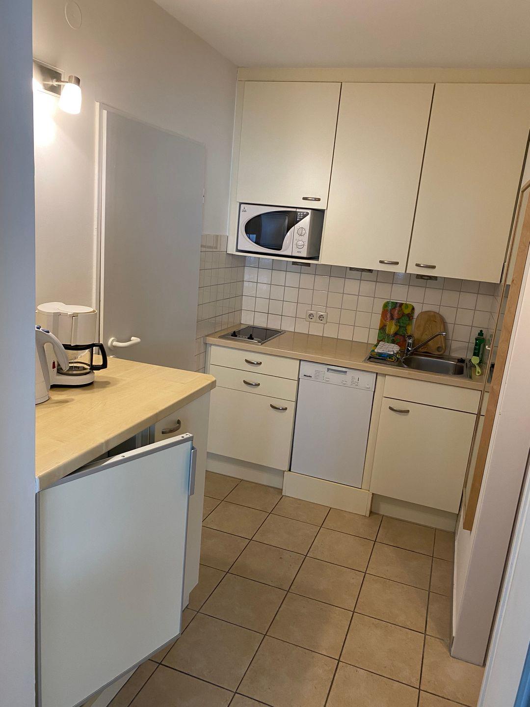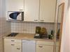 Die Küchenzelle im Eingangsbereich hat zusätzlich eine Mikrowelle und Spülmaschine.