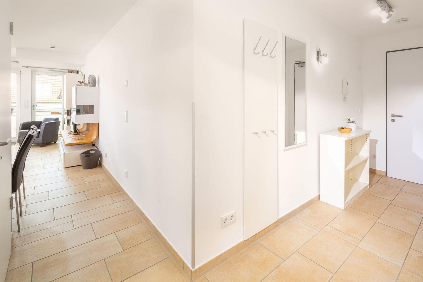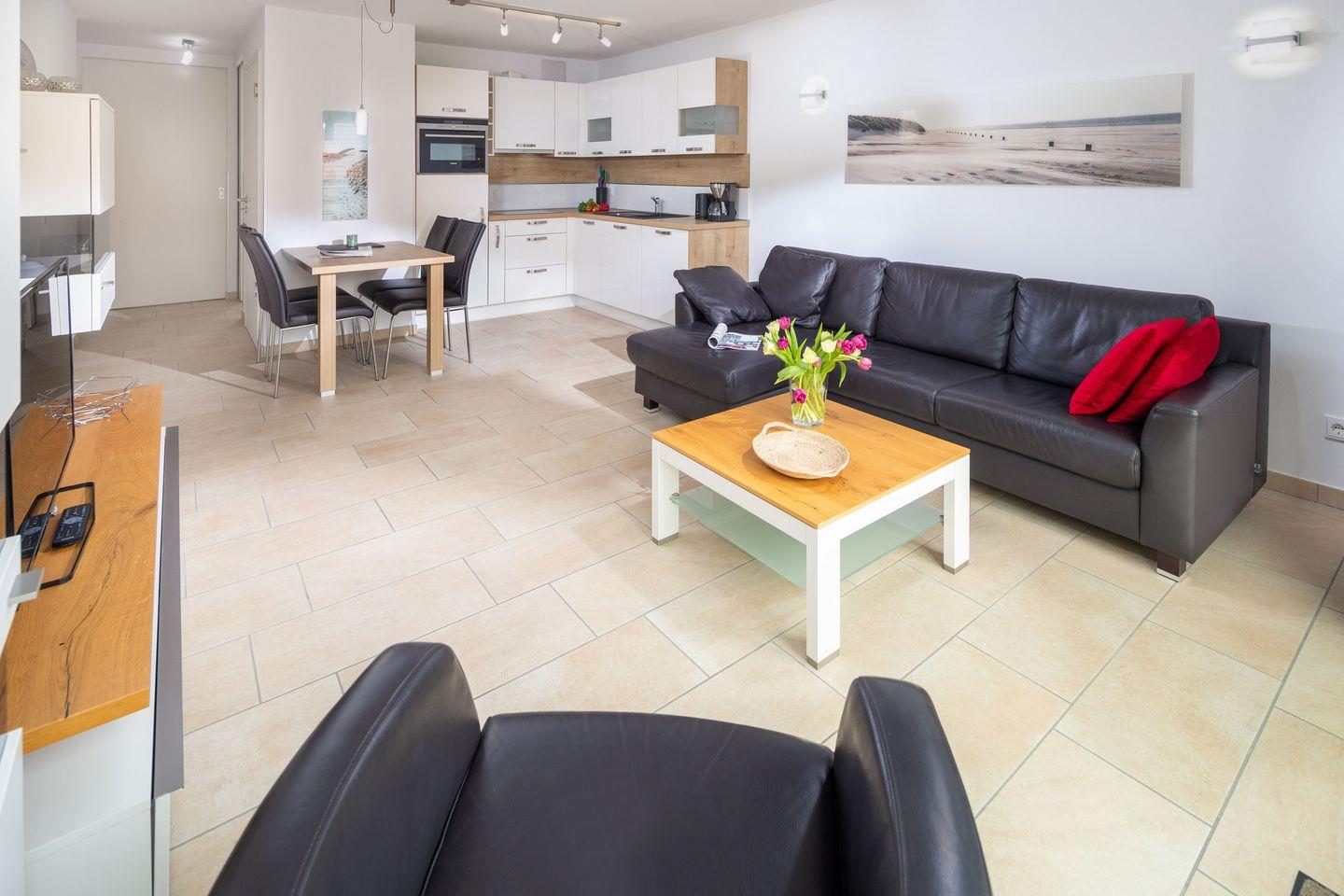 Die moderne Küche der Ferienwohnung lässt keine Wünsche offen. Sie ist komplett ausgestattet mit einem Ofen, Herd, Geschirrspüler und allen notwendigen Utensilien, um Ihren Aufenthalt so angenehm wie möglich zu gestalten. Genießen Sie gemeinsame Mahlzeiten in der großzügigen und stilvollen Küche.