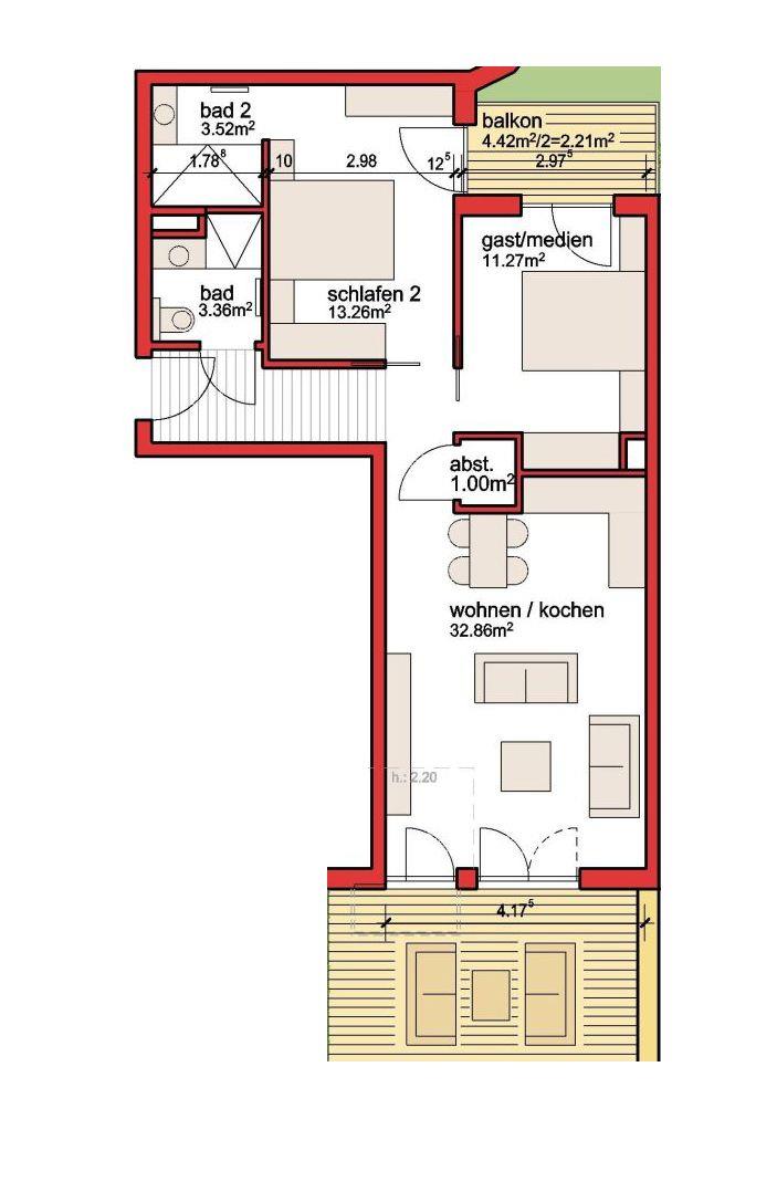 Die zentrale Lage ermöglicht es Ihnen, alle Geschäfte des täglichen Bedarfs bequem zu erreichen. Die großzügige Sonnenterrasse lädt zum Sonnenbaden und Entspannen ein, sodass Sie Ihren Urlaub in vollen Zügen genießen können.