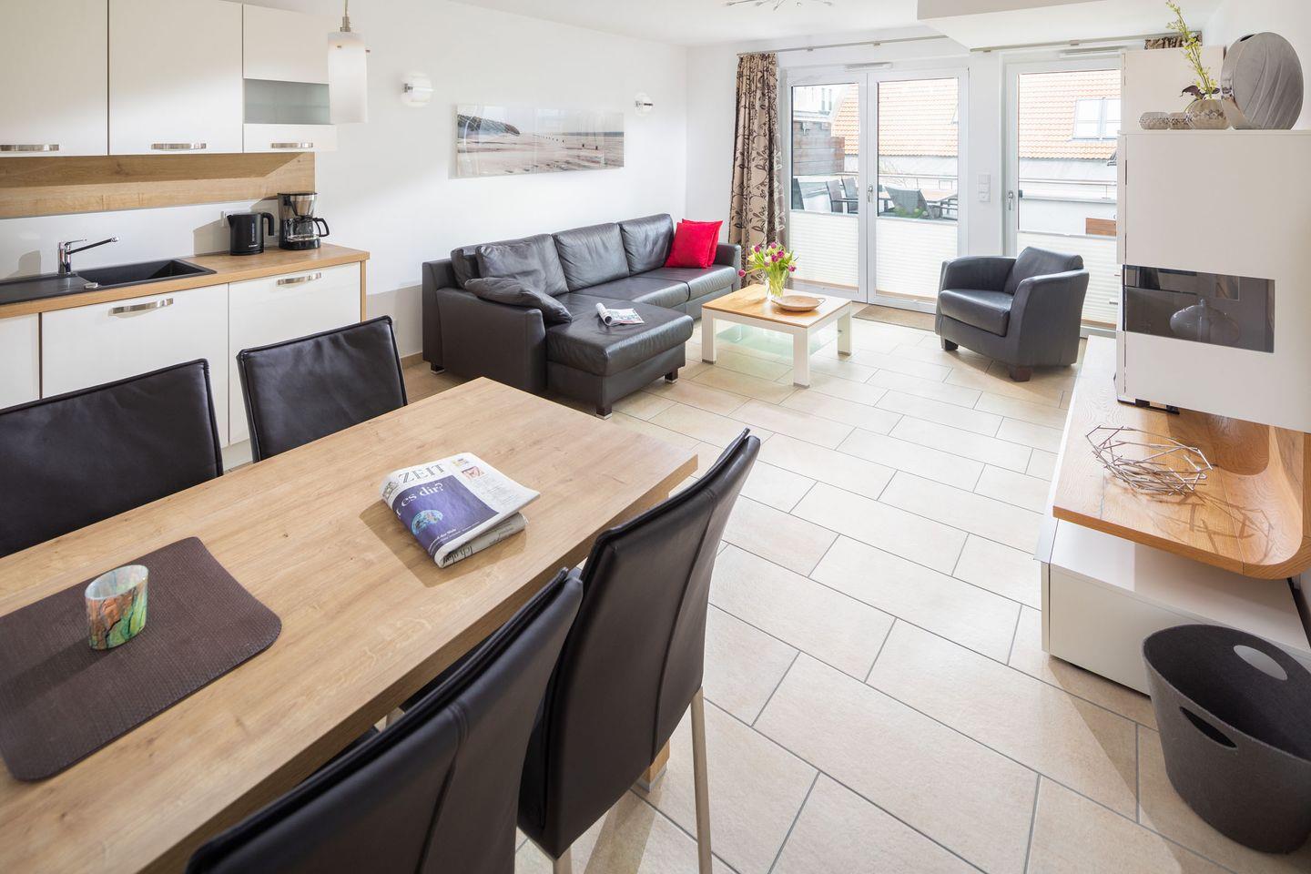 Die Ferienwohnung "Bremen" in Schippers Huus ist modern eingerichtet und im September 2014 fertiggestellt worden. Die im 1. OG gelegene Ferienwohnung bietet auf 80 qm Wohnfläche genug Platz für eine große Familie zu einem entspannten Urlaub. Von der Dachterrasse genießen Sie den Blick auf die Nordsee oder blicken auf das bunte Treiben am Denkmal. Der Balkon vor dem Schlafzimmer lockt mit Morgensonne. Alle Geschäfte des täglichen Bedarfs liegen in unmittelbarer Nähe der Wohnung. Durch die barrierefreie Lifterschließung ist sie für Gehbehinderte gut geeignet. Jedem Schlafzimmer ist ein Bad zugeordnet. Das große Bad ist barrierefrei. Familien haben in der Bremen ausreichend Platz. Die große Sonnenterrasse lädt zum Sonnenbaden ein.