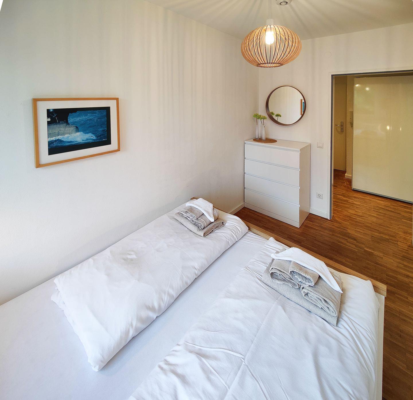 Die komplett ausgestattete Küche ermöglicht es Ihnen, bequem Ihre Lieblingsmahlzeiten zuzubereiten. Neben einer Filterkafffeemaschine gibt es nun auch eine Nespresso Kapsel Maschine. Ein Schlafzimmer mit Doppelbett und ein Wannenbad bieten weiteren Komfort und vervollständigen die Ausstattung der Ferienwohnung. Der Flur bietet ausreichend Stauraum für Ihre persönlichen Dinge.