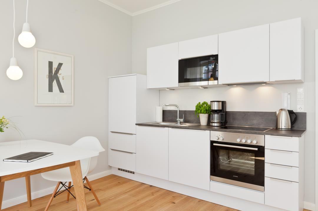 Genießen Sie den Komfort und die Eleganz dieser einzigartigen Ferienunterkunft. Der gemütliche Wohnbereich mit offener Küche lädt zum Verweilen ein und bietet Ihnen die Möglichkeit, entspannte Stunden zu genießen. Die moderne Einrichtung harmoniert perfekt mit dem historischen Charme des Hauses und schafft eine Atmosphäre, die Erholung verspricht.