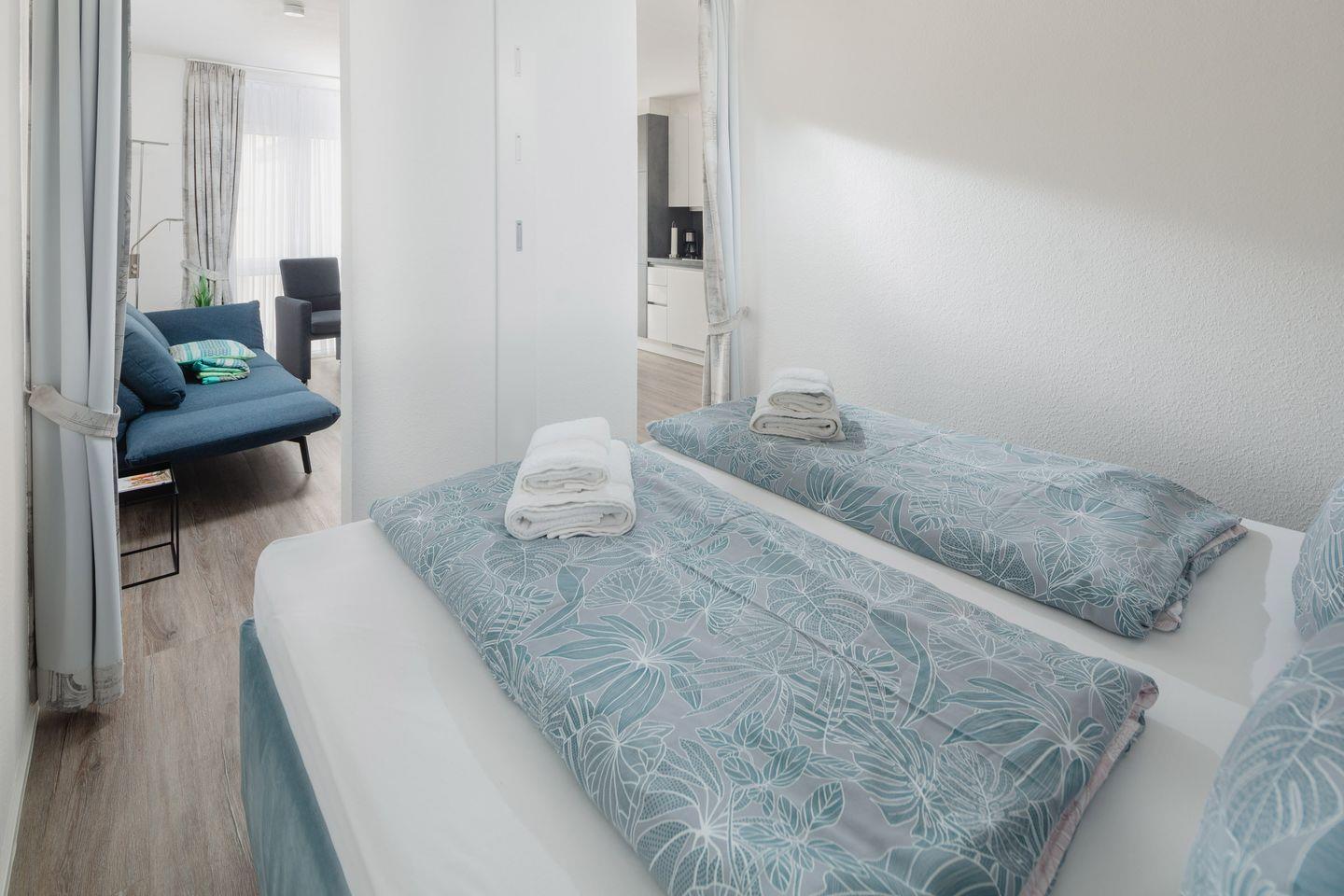 Für Unterhaltung sorgen ein LOEWE-Fernseher mit digitalem Radioempfang, USB-Anschluss und Internetfunktion. Ein kostenloser WLAN-Zugang steht Ihnen in der gesamten Wohnung zur Verfügung.