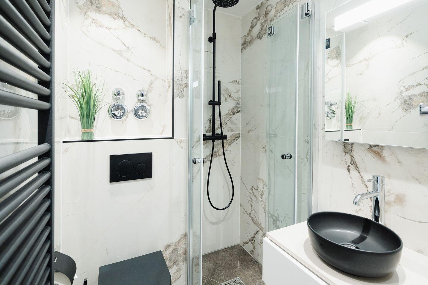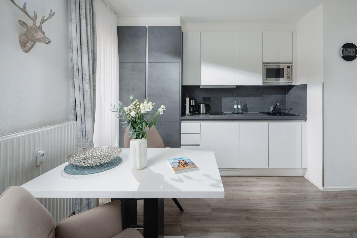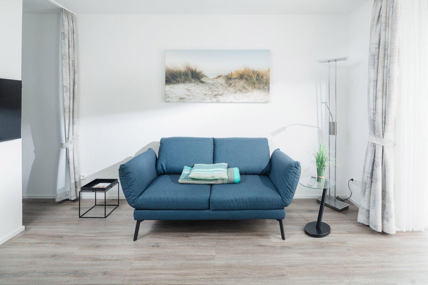Das Luisenstudio wurde von Grund auf in 2021 renoviert. Es erwartet Sie eine ca. 33 qm große Wohnung, mit seitlichem Meerblick, für bis zu 2 Personen. Die Ferienwohnung bietet Ihnen eine Komposition aus natürlichen, farblich abgestimmten Materialien, die Ihnen Gemütlichkeit und Wohnkomfort garantieren. Sehr bequeme, drehbare Sitzstühle, eine moderne Küchenzeile mit umfangreicher Ausstattung und zwei Sessel komplettieren den Raum. Zum separaten Schlafbereich gehören ein Boxspringbett und Wandbeleuchtungen, in die jeweils ein USB-Anschluß für Ihr Smartphone integriert ist. Das Bad glänzt mit italienischen Designerstücken und außergewöhnlicher Farbgestaltung.