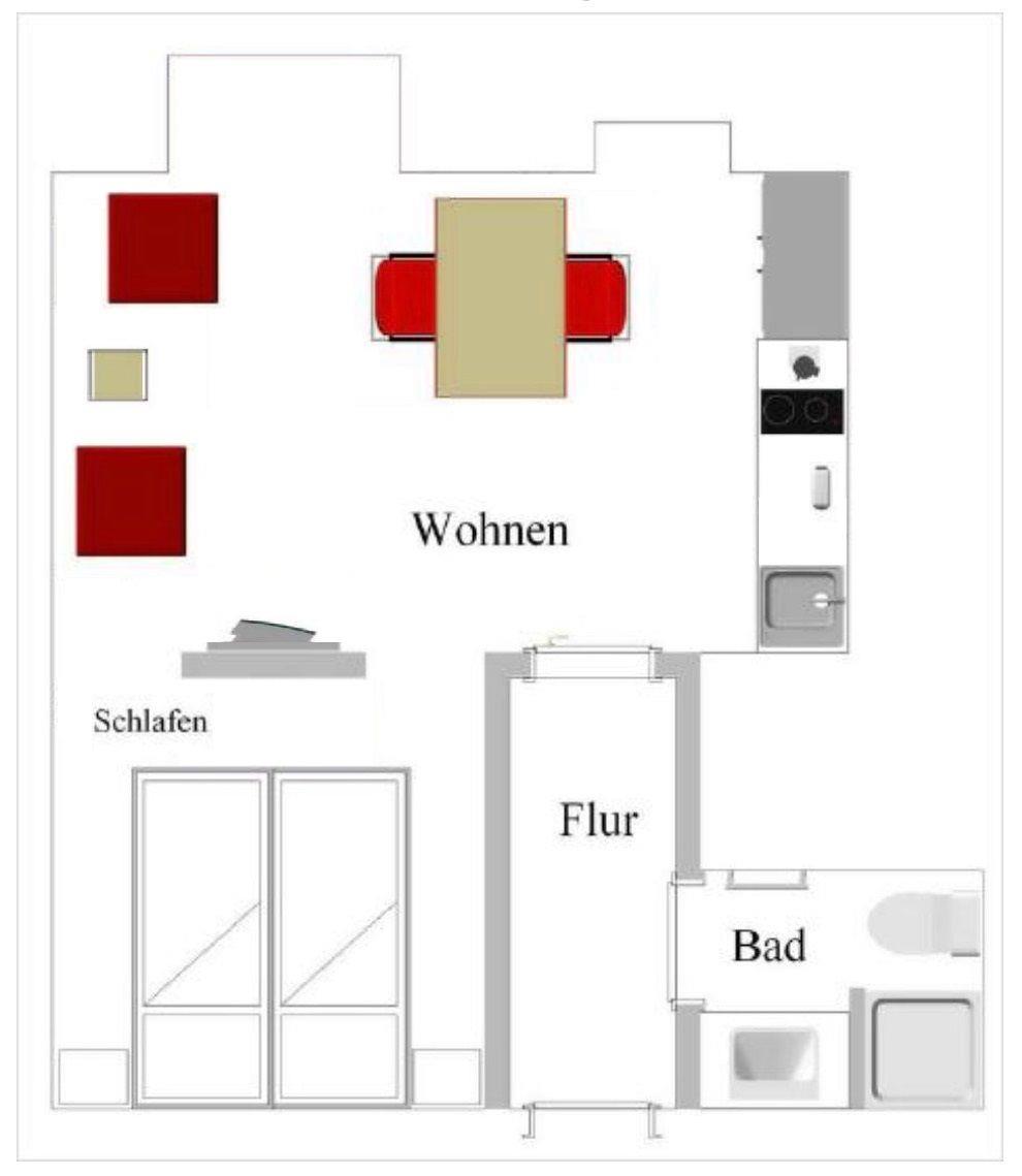 1 Badezimmer, 1 Flur, max. 2 Gäste, ca. 33 qm