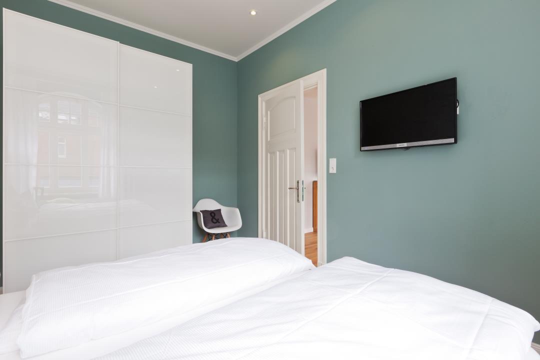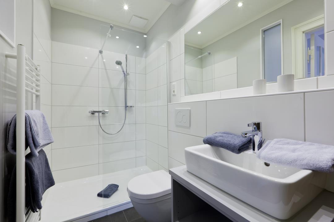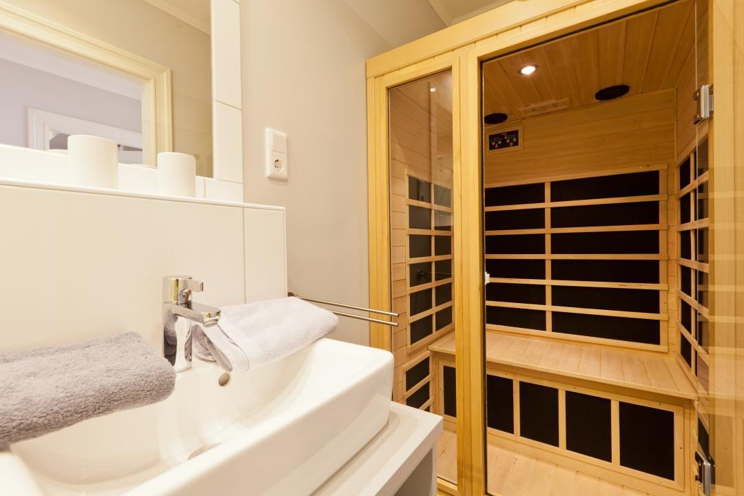 Die Ferienwohnung verfügt über zwei separate Schlafzimmer, jedes mit einem gemütlichen Doppelbett ausgestattet. Hier erleben Sie erholsame Nächte in einem stilvollen Ambiente. Die beiden Bäder sind nicht nur großzügig, sondern bieten auch besondere Highlights. Ein Bad ist mit einer Infrarotsauna ausgestattet, die für zusätzliche Entspannung sorgt. Das zweite Bad steht Ihnen ebenfalls zur Verfügung, um den Komfort zu maximieren.