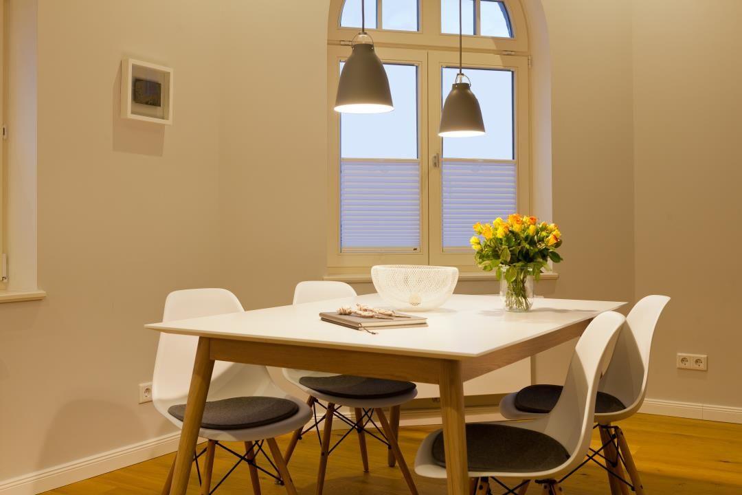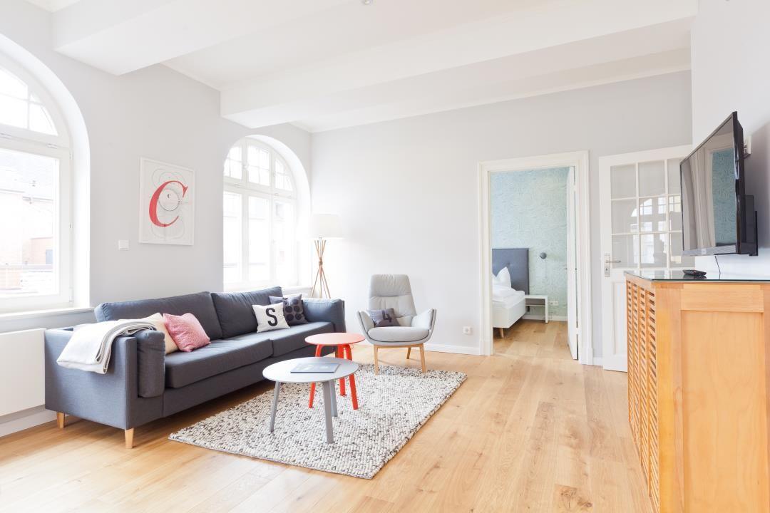 Die unter Denkmalschutz stehende "Soltau'sche Buchdruckerei" wurde 2015 aufwendig kernsaniert. Nun beherbergt sie Ihre luxuriöse Ferienwohnung im ersten Obergeschoss. Freuen Sie sich auf einen erholsamen Urlaub in diesem tollen Ambiente. Auf 85 qm verteilen sich ein großzügiger Wohnraum mit Küche, zwei separate Schlafzimmer mit Doppelbett, ein großes Bad mit Infrarotsauna sowie ein weiteres Duschbad. Mit einem Glas Wein können Sie den Tag auf dem möblierten Balkon ausklingen lassen. Im Haus stehen Ihnen zudem eine Waschmaschine, ein Trockner sowie ein Fahrradraum zur Verfügung.