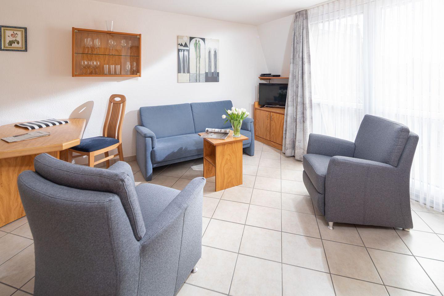 Herzlich willkommen in der Ferienwohnung Kogge17 im Haus "Die Kogge" auf Norderney! Diese helle Einraumwohnung im 3. Obergeschoss ist bequem per Fahrstuhl erreichbar und bietet einen großzügigen Balkon mit Blick über den Innenhof auf Norderney.