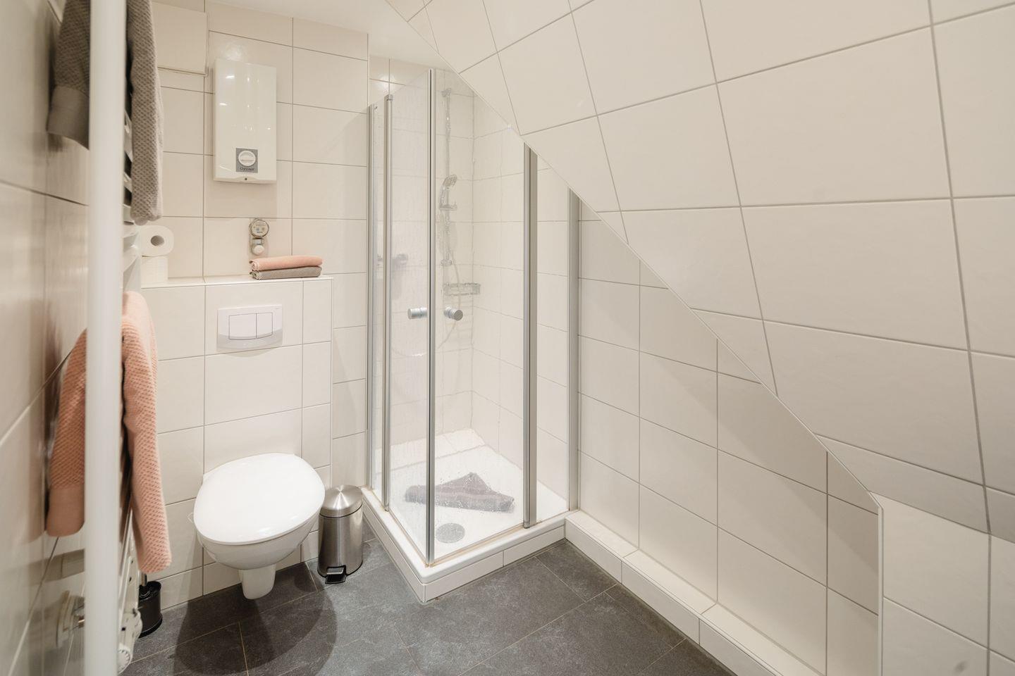 Ein weiteres Highlight der Unterkunft ist das ansprechende Badezimmer mit Dusche, Haartrockner und einem Kosmetikspiegel. Frische Handtücher und Bettwäsche sind im Preis inbegriffen.