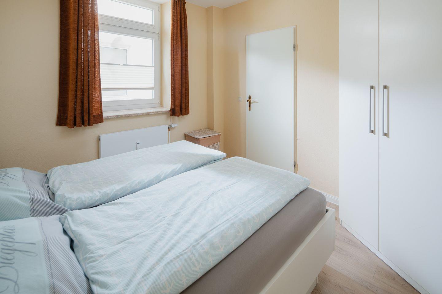 Die Ferienwohnung verfügt über ein gemütliches Schlafzimmer, das zum Entspannen einlädt. Das Badezimmer ist mit einer bodengleichen Dusche, einem Waschbecken und einem WC ausgestattet und hält einen Haartrockner sowie Handtücher für Sie bereit.