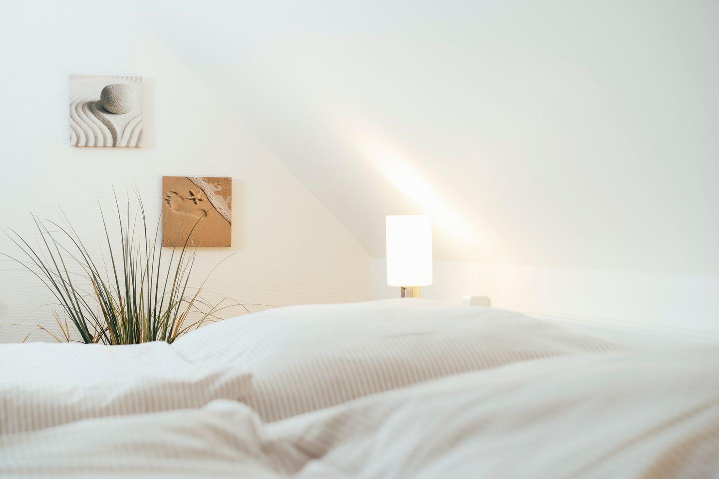 Das Schlafzimmer ist mit einem Doppelbett ausgestattet.