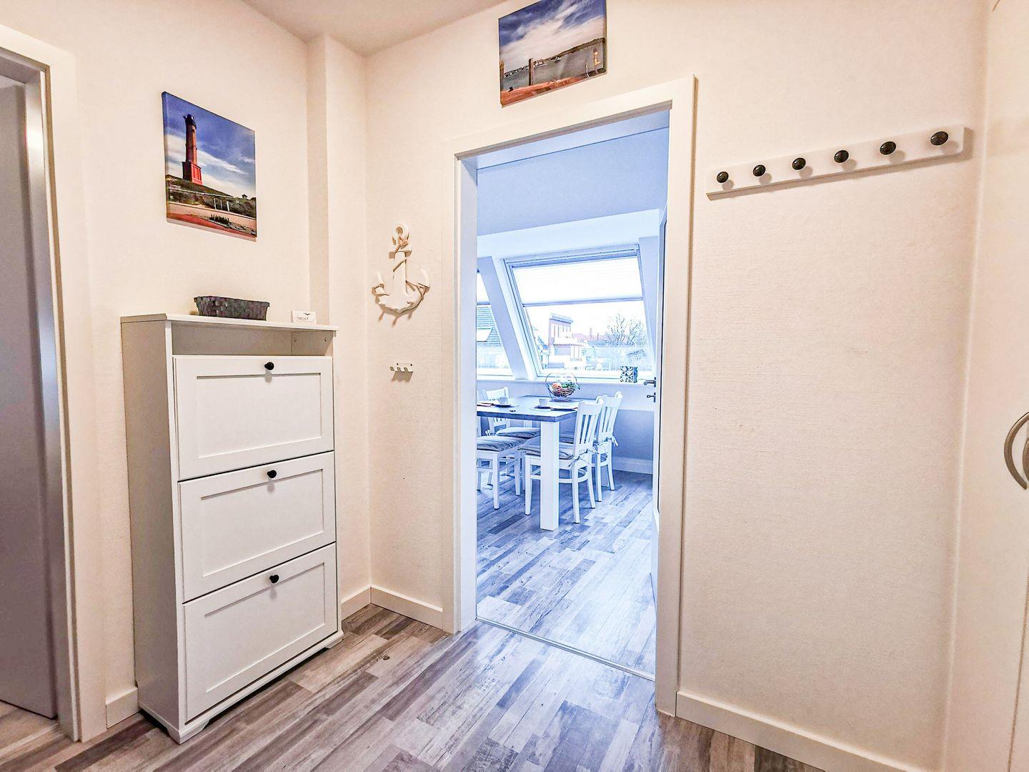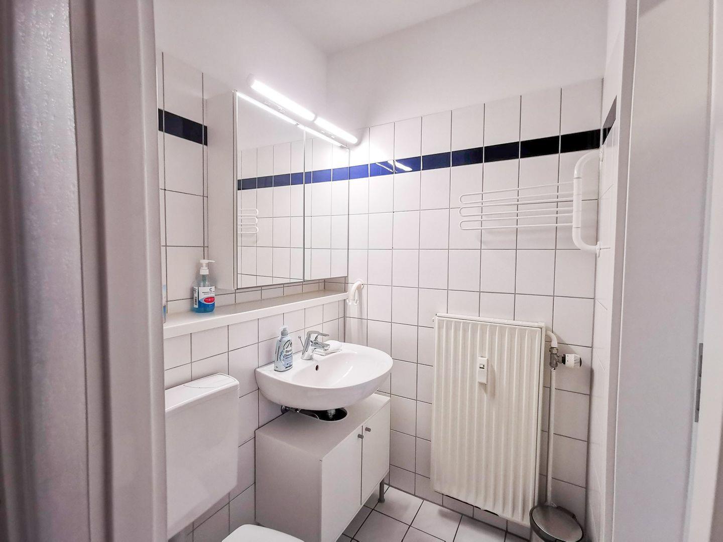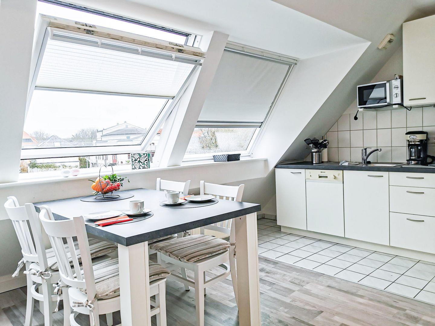 großzügiger Wohn-Schlafraum mit offener Küchenzeile, Essbereich und Sofaecke (Schlafsofa 190 cm Liegefläche). Von 3 großen Veluxfenstern haben Sie einen hübschen Blick über den Platz bis zum Theater. Das separate Schlafzimmer mit Doppelbett (180*200) bietet problemlos Platz für ein eventuell benötigtes Kinderreisebettchen. Auch ein kleiner Flur mit Garderobe ist vorhanden. Badezimmer mit Dusche/WC.