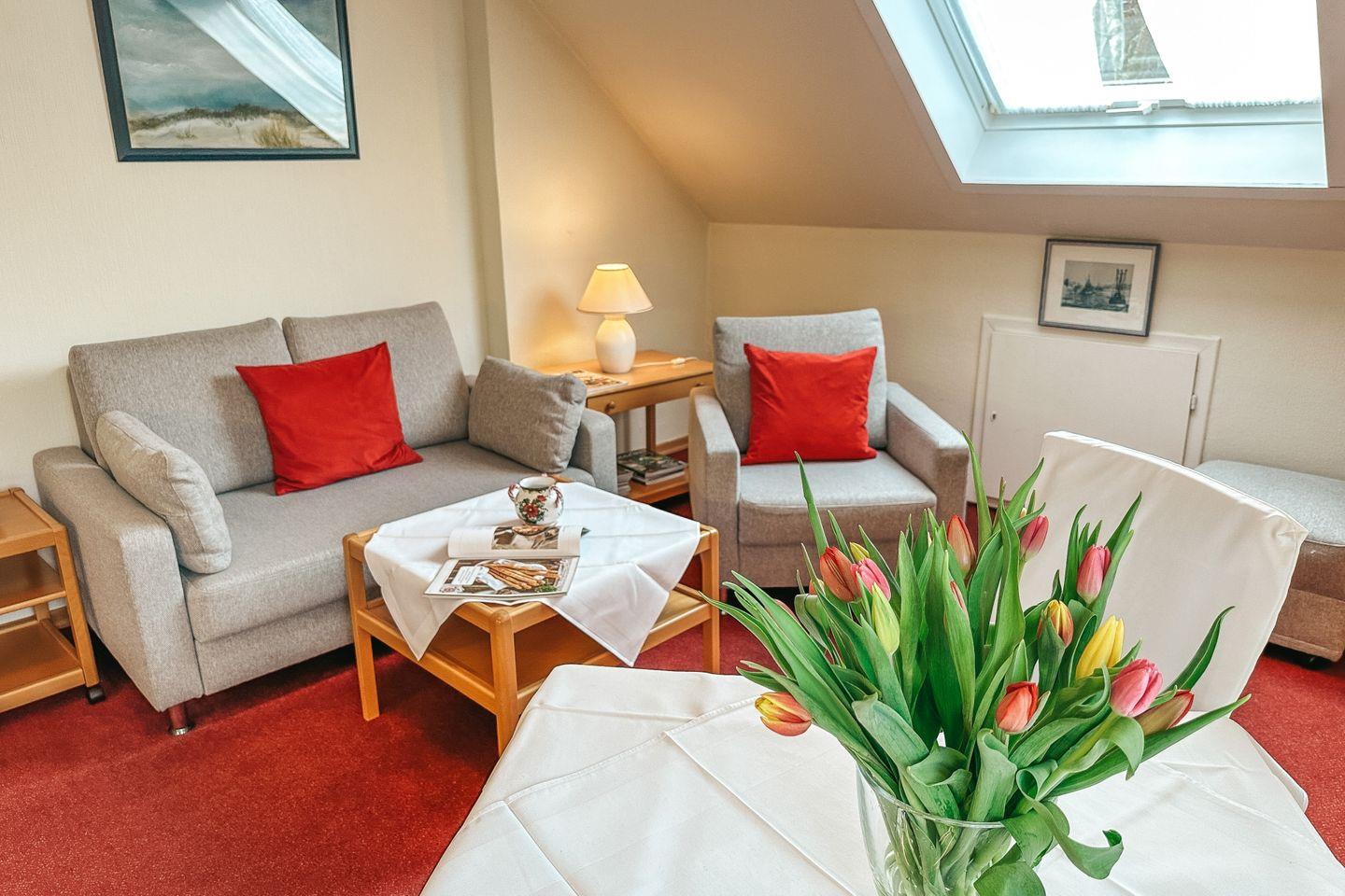 Willkommen im Gästehaus Röll - Wohnung 1, Ihrem perfekten Rückzugsort auf Norderney! Diese gemütliche Ferienwohnung mit einer Fläche von 36 m² ist ideal für Paare oder kleine Familien, die einen unvergesslichen Urlaub an der Nordsee verbringen möchten. Die Wohnung bietet Platz für bis zu zwei Personen und verfügt über ein Schlafzimmer sowie ein modernes Badezimmer mit Dusche.