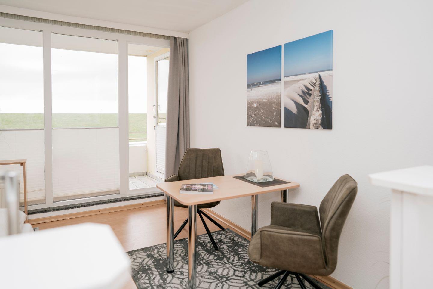 Dieses wunderschöne 1-Zimmer-Deichblickwohnung bietet auf 25qm modernen und stilvollen Komfort für bis zu 2 Personen. Unmittelbar an der Strandpromenade gelegen. Einkaufsmöglichkeiten, Restaurants und Cafés sind nur wenige Gehminuten entfernt. Erleben Sie auf dem Balkon das Meeresrauschen und einzigartige Sonnenuntergänge.
