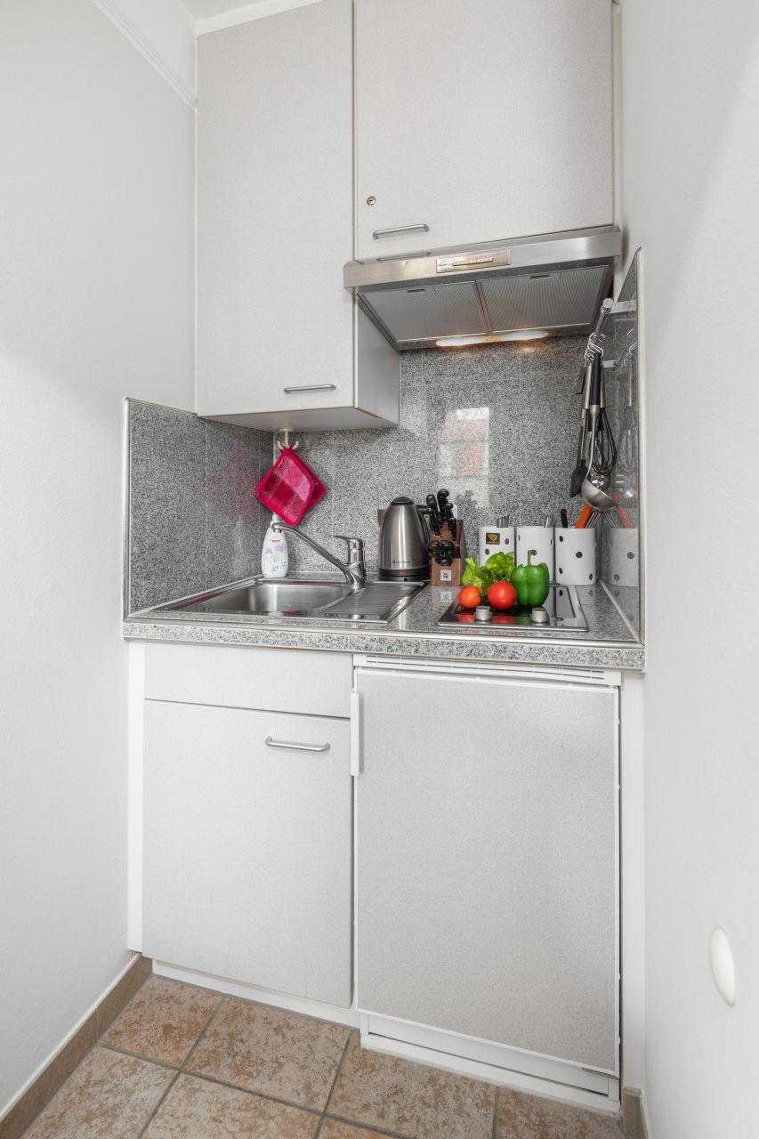 Die Ferienwohnung verfügt über ein gemütliches Schlafzimmer mit ausreichend Platz für zwei Sclafmöglichkeiten (90x200cm) sowie ein modernes Badezimmer, das mit einer Dusche und einem Haartrockner ist. Die kleine Küche bietet einen 2-Platten-Herd, Kühlschrank mit Gefrierfach, Kaffeemaschine, Toaster und Wasserkocher – alles, was Sie für eine angenehme Verpflegung benötigen.