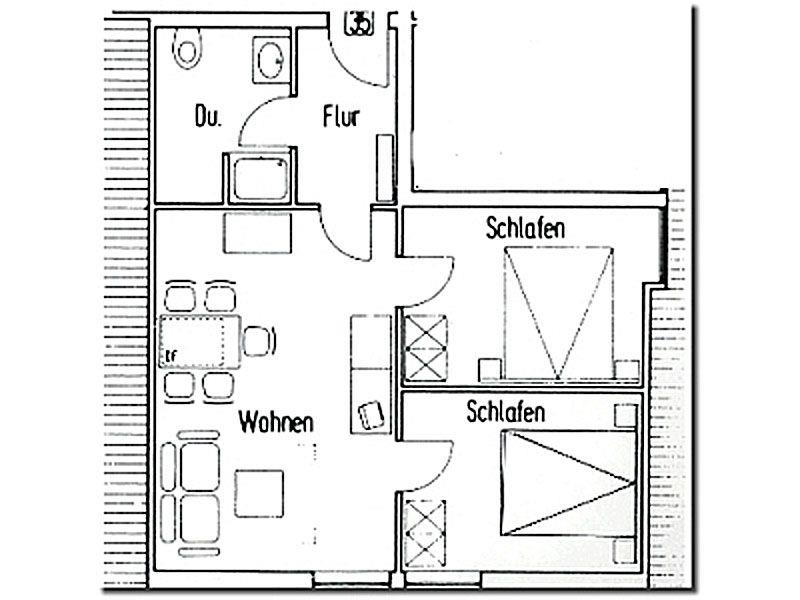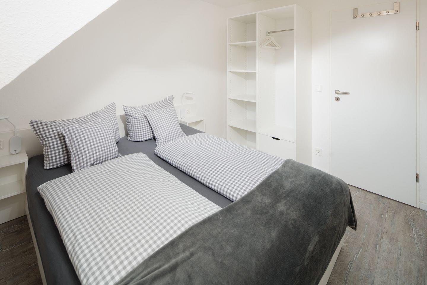 Die Wohnung verfügt über zwei gemütliche Schlafzimmer mit einem Doppelbett (160x200cm), die mit warmen Farben und modernem Vinylboden ausgestattet sind, um eine entspannte und einladende Umgebung zu schaffen. Das offene Wohnkonzept mit einem großzügigen Wohnzimmer ist der perfekte Ort, um gemeinsam zu entspannen. Hier finden Sie eine bequeme Sofaecke und einen Esstisch, an dem Sie Ihre gemeinsamen Mahlzeiten genießen können. Die technische Ausstattung lässt keine Wünsche offen: Ein TV mit Kabelanschluss sorgt für Unterhaltung an gemütlichen Abenden, während WLAN Ihnen ermöglicht, jederzeit mit der Welt verbunden zu bleiben.