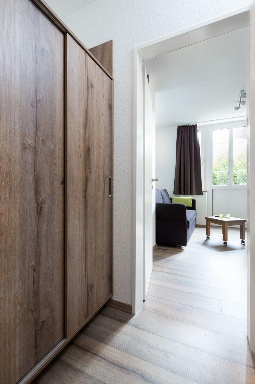 Dieses kleine, komplett neu renovierte 1-Raum-Appartement mit eigener kleiner Terrasse liegt im Erdgeschoss und verfügt über eine ausklappbare Schlafcouch (160x200cm) für bis zu 2 Personen und maximal 1 Hund.