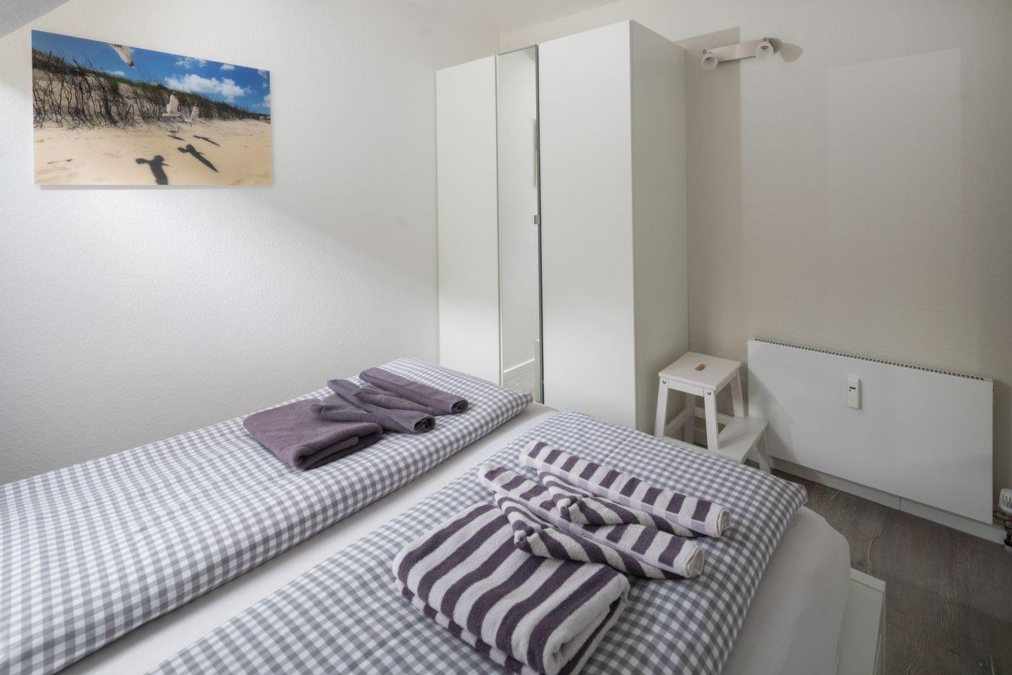 Willkommen in der charmanten Ferienwohnung im Haus Bielefeld, die Ihnen die perfekte Auszeit an der Nordsee bietet. Diese komfortable 34 m² große Unterkunft befindet sich im 2. Stock und eignet sich ideal für Paare oder kleine Familien, die einen ruhigen Rückzugsort suchen. Mit einem Schlafzimmer, Doppelbett (160x200cm) und einem modernen Badezimmer ist die Wohnung gut durchdacht und bietet Platz zum Entspannen und Wohlfühlen.