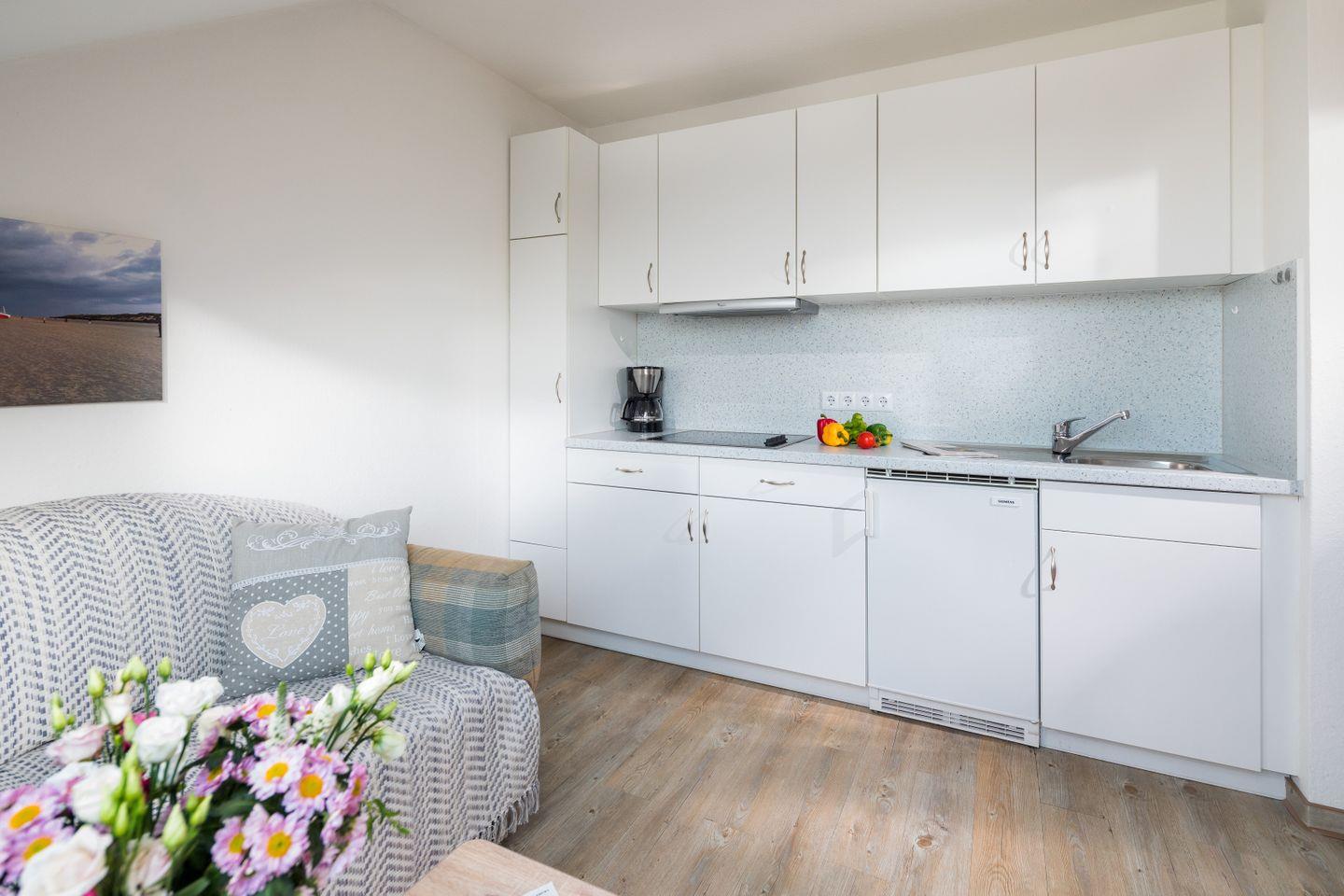 2-Raum-Wohnung Nora 2 befindet sich im Dachgeschoss des Hauses in der 2. Etage. Die Wohnung verfügt über 1 Schlafzimmer mit 180x200cm Doppelbett und 1 Wohnzimmer mit Küchenzeile. Im Wohnraum befinden sich ein 2-Sitzer-Sofa mit Schlaffunktion, 1 Cocktailsessel sowie 1 Esstisch. Vom Schlafzimmer gelangen Sie ins Bad mit Dusche/WC. Alle Fenster verfügen über Verdunkelungsmöglichkeit. Kein Clubtourismus oder Gruppenreisen.
