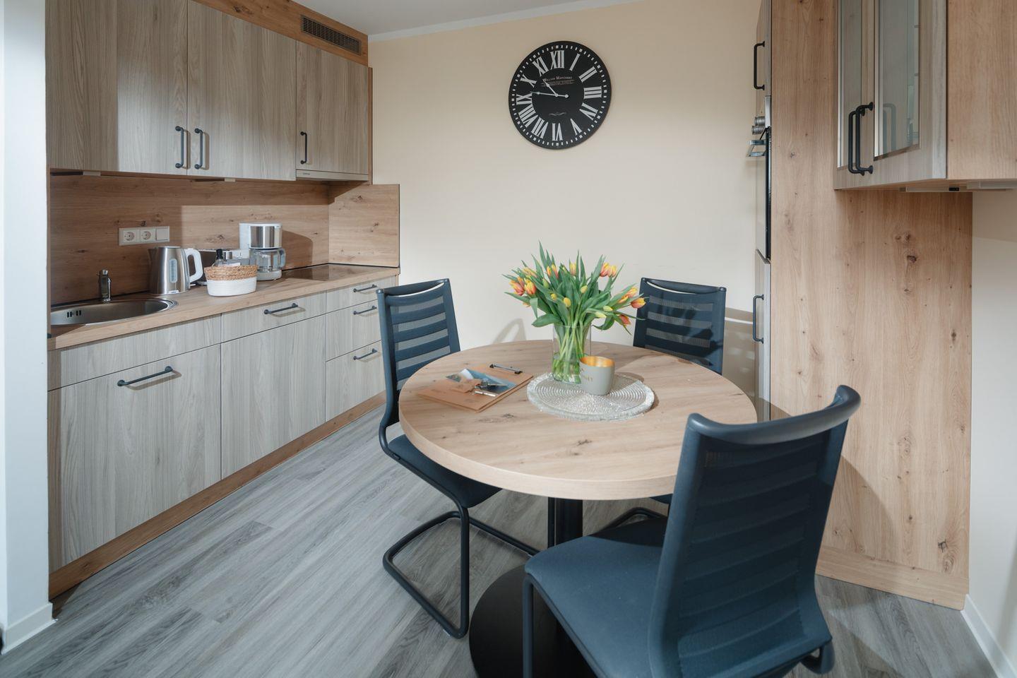 Die neue Küche ist komplett ausgestattet und lädt zum Kochen ein. Bereiten Sie Ihre Lieblingsgerichte zu und genießen Sie sie am Esstisch oder auf der Terrasse .