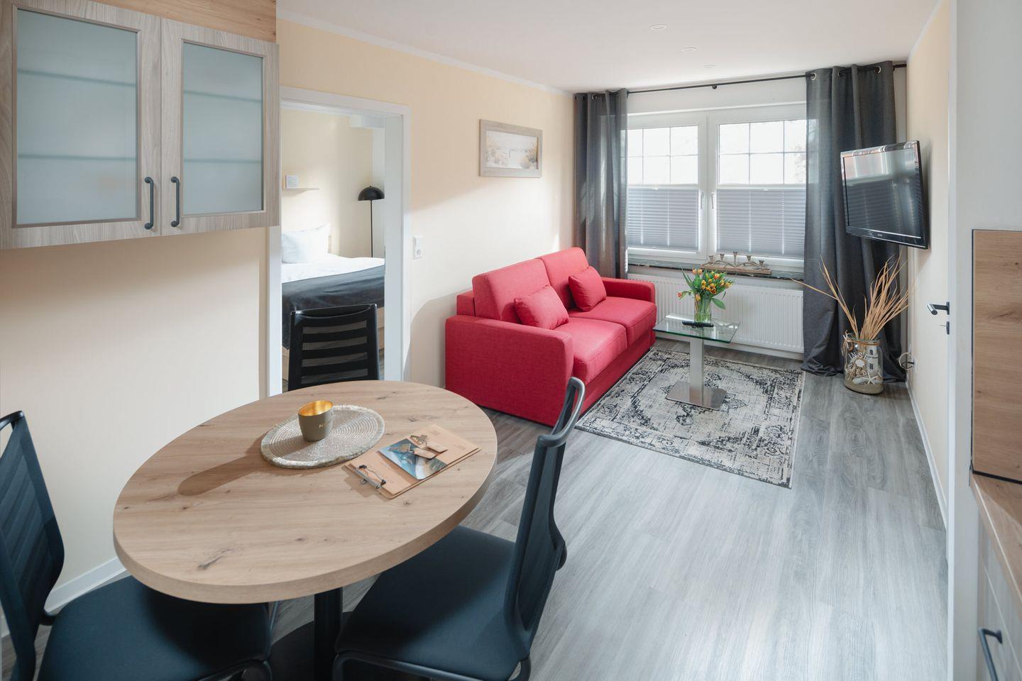 Die Küche und der Wohnbereich wurden kürzlich renoviert und erstrahlt in neuem Glanz. Sie werden sich sofort wohl fühlen. Ein komfortables Schlafsofa bietet ab Februar 2024 Platz für die dritte Person und sorgt für erholsame Nächte. Für einen traumhaften Schlaf sorgt das Doppelbett der Größe 180x200cm.