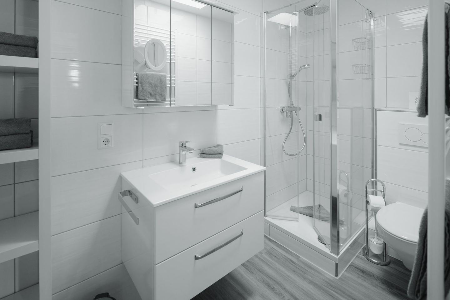 Das Badezimmer wurde ebenfalls frisch renoviert und bietet moderne Annehmlichkeiten sowie eine stilvolle Atmosphäre.