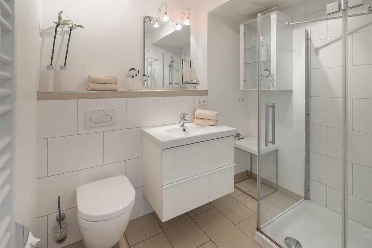 Das Badezimmer verfügt über eine Dusche und ist modern ausgestattet mit einem Haartrockner und allen nötigen Toilettenutensilien. Für Familien mit kleinen Kindern stehen ein Hochstuhl und ein Babybett zur Verfügung, sodass sich auch die Kleinen bei uns wohlfühlen. Die Wohnung ist rauchfrei, um Ihnen den höchstmöglichen Komfort zu bieten.