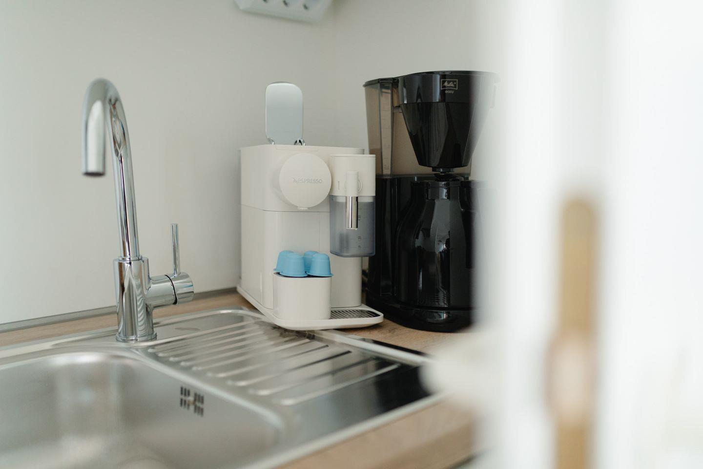 Das Tageslichtbad ist mit einem Waschbecken, einem WC sowie einer Dusche ausgestattet. Im gemütlichen Wohnzimmer mit offener Küche erwartet Sie ein Schlafsofa der Größe 160x200cm, welches auch als Schlafmöglichkeit dienen kann. Die Küche ist umfassend ausgestattet mit Kühlschrank, Gefrierfach, Backofen, Ceranfeld, Spülmaschine, Kaffeemaschine und einer Nespresso-Kapselmaschine. Bei Bedarf stellen wir Ihnen gerne eine Mikrowelle zur Verfügung.