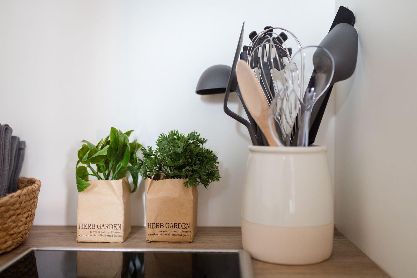 Die kleine, separate Küche ist mit allem ausgestattet, was Sie für die Zubereitung Ihrer Lieblingsspeisen benötigen.