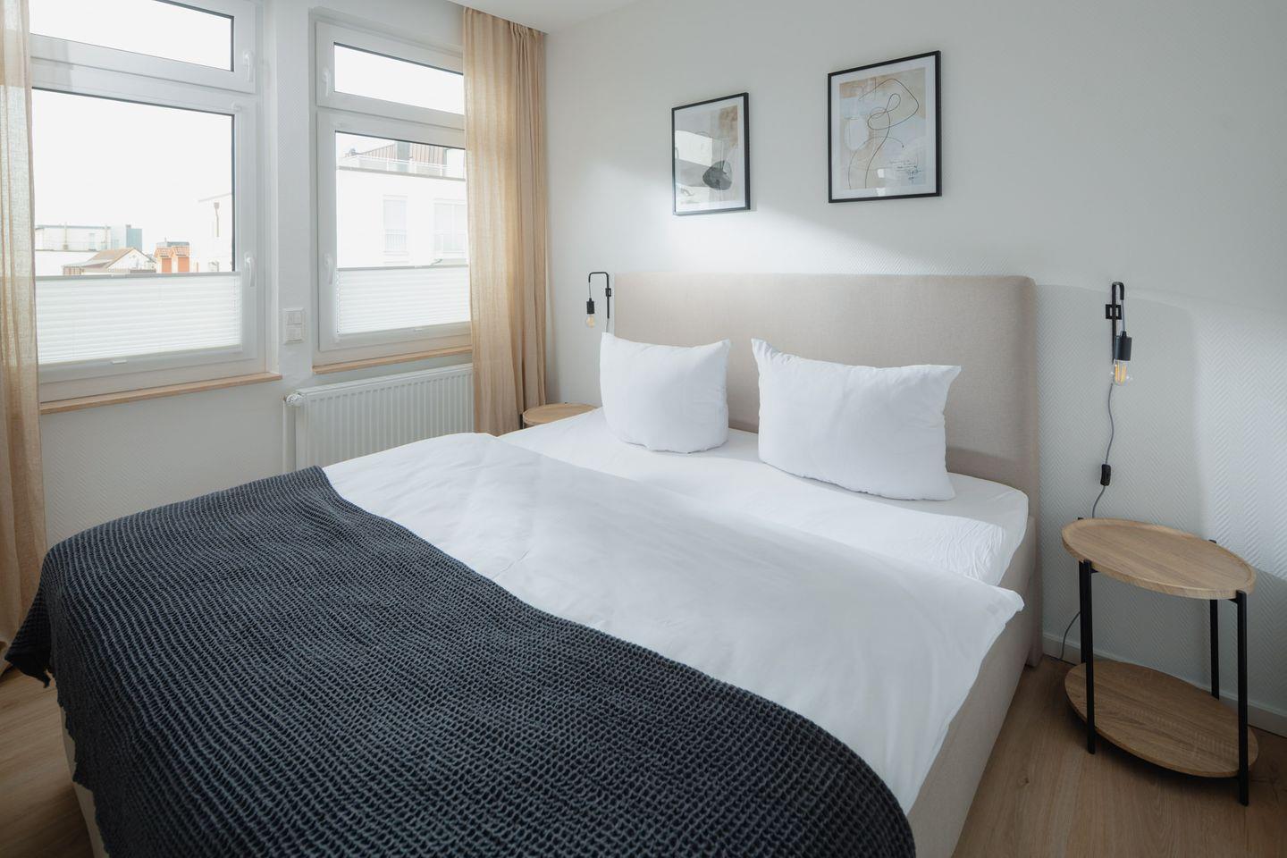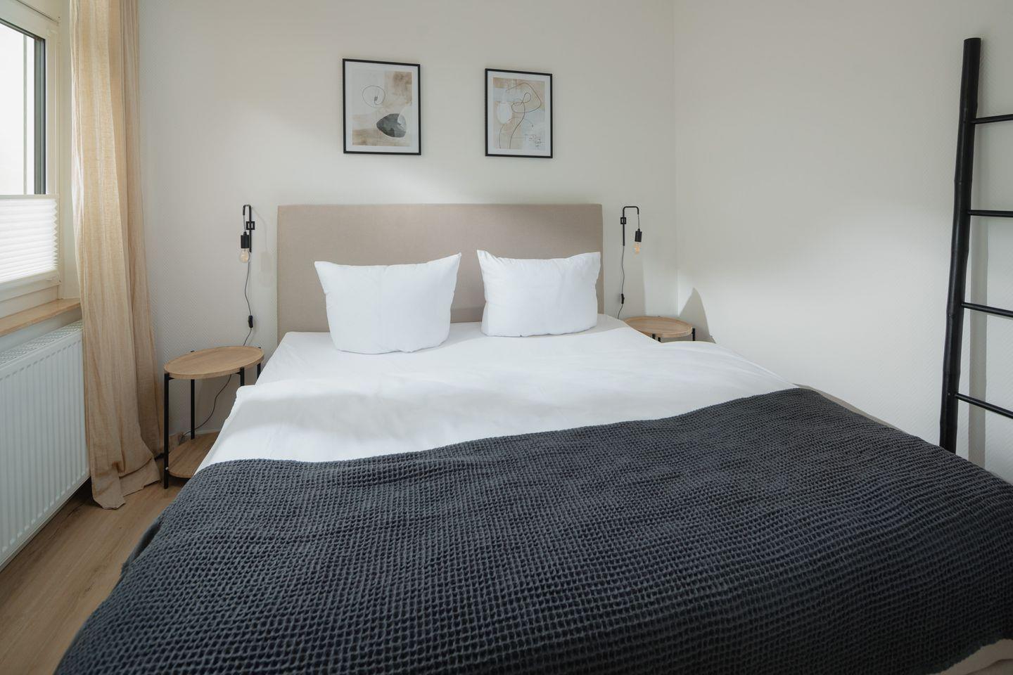Die Wohnung ist komplett ausgestattet und bietet alles, was Sie für einen angenehmen Aufenthalt benötigen. Das Schlafzimmer verfügt über ein komfortables Boxspringbett der Größe 180x200cm.