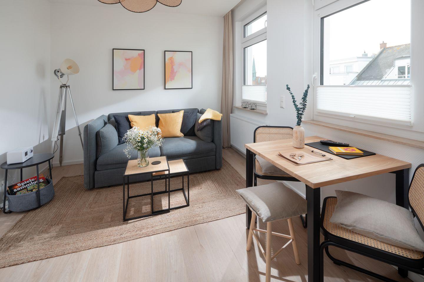 Der skandinavische Stil der Einrichtung verleiht der Wohnung eine besondere Atmosphäre, in der man sich sofort wohlfühlt. Die Unterkunft bietet Platz für bis zu 3 Personen und ist sogar hundefreundlich, sodass auch Ihr vierbeiniger Begleiter herzlich willkommen ist.