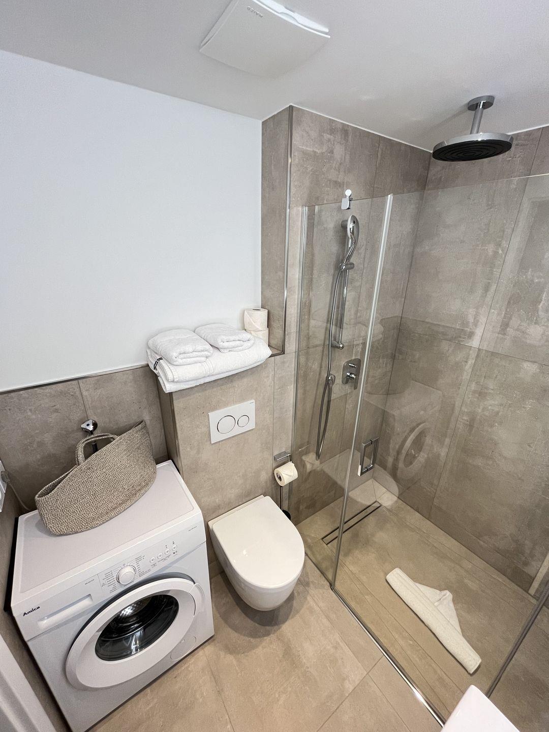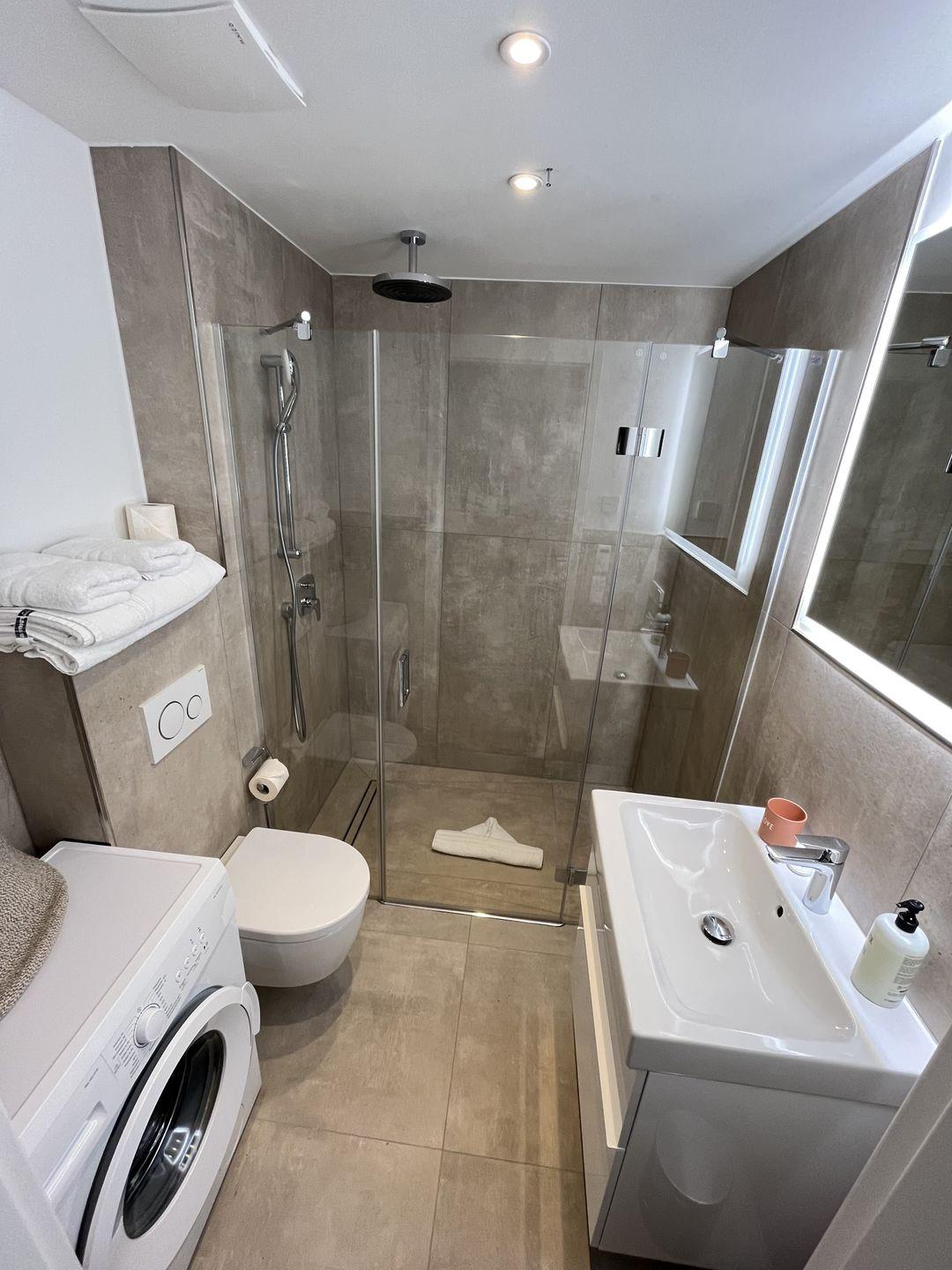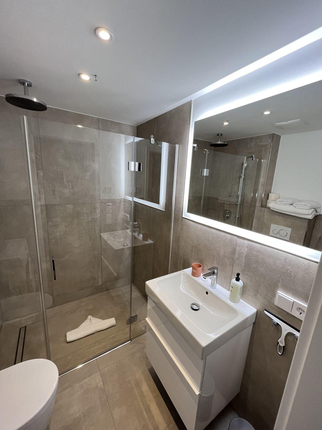 Die beiden getrennten Badezimmer mit ebenerdiger Dusche und RegenShower laden nach einem Strandtag dazu ein, zu relaxen.