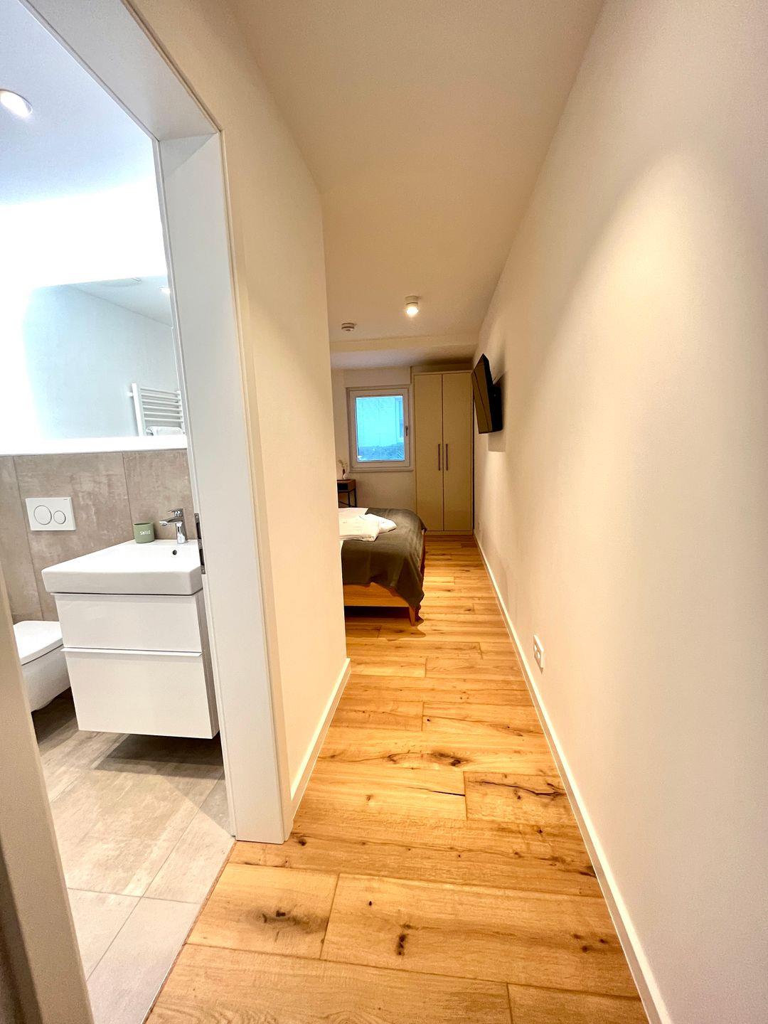Die kleine, aber fein eingerichtete Wohnküche mit Induktionsherd, Spülmaschine, Gefrier-/ Kühlschrank, Nespressomaschine und Mikrowelle/Grill hat alles, was das Herz begehrt, um leckere Gerichte zu zaubern und hungrige Mäuler zu stopfen.