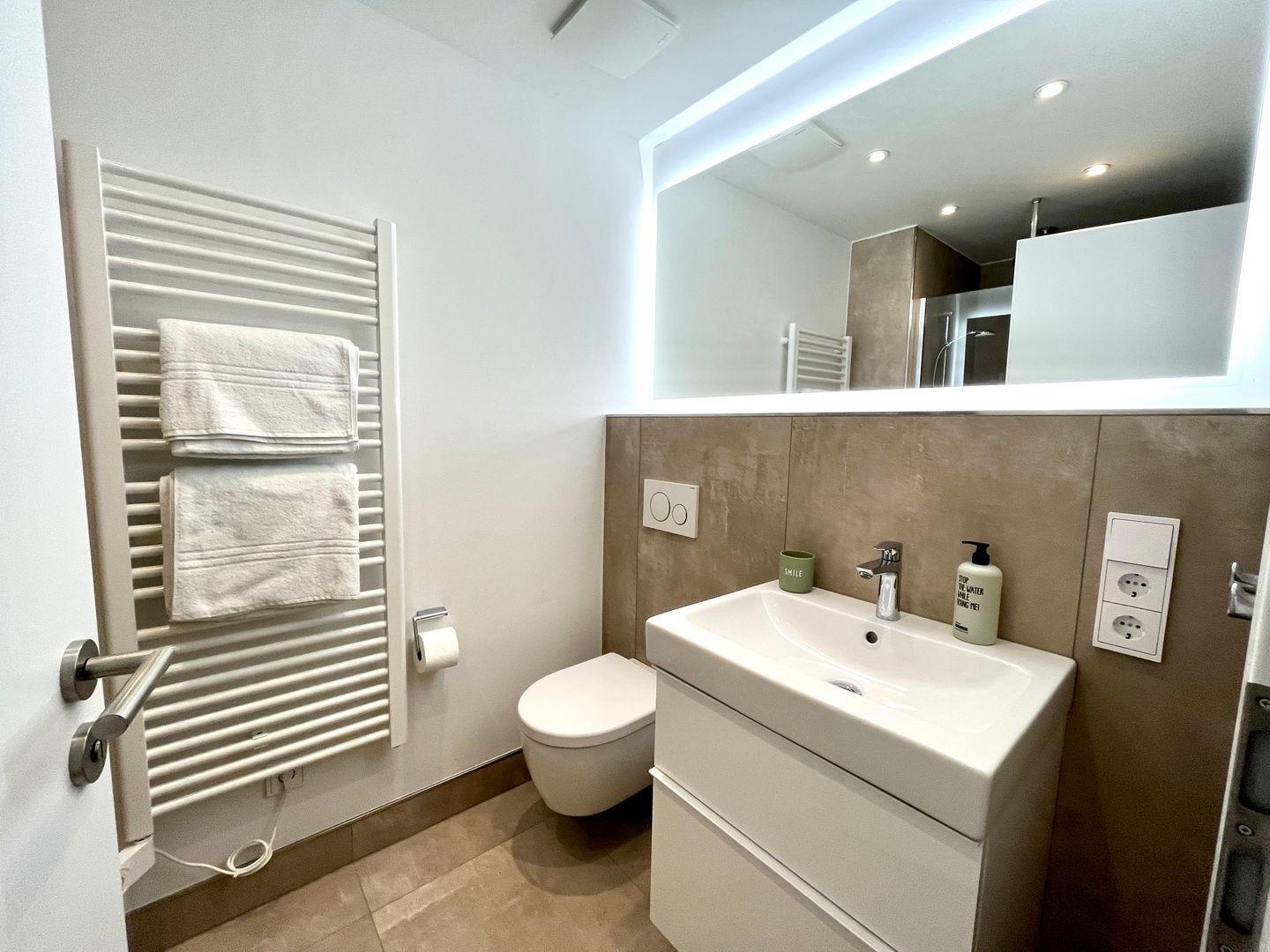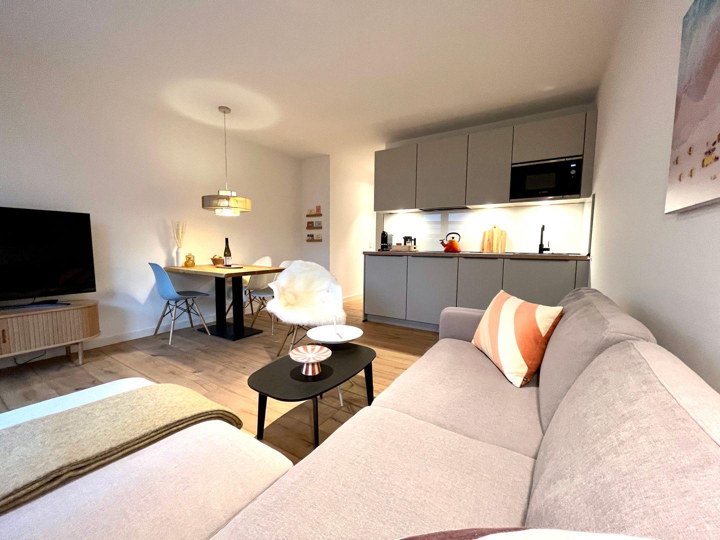 Neubau-Wohnung, private Sauna & Terrasse, 63m², 150m zum Strand, 2 SZ, 2 Bäder