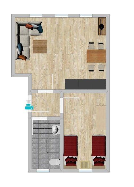 Die Ferienwohnung Nr. 2 im Haus Delphin befindet sich in ruhiger Lage in einem Reihenhaus in der Straße „Up Süderdün“ und hat eine Wohnfläche von ca. 35m². Diese verfügt über ein Schlafzimmer, einen großzügigen Wohn-/Essbereich mit Schlafsofa und integrierter Küchenzeile sowie ein Duschbad.