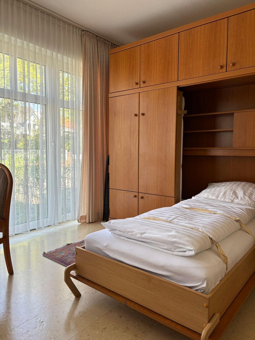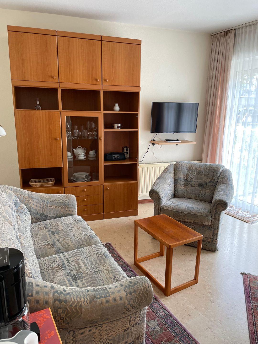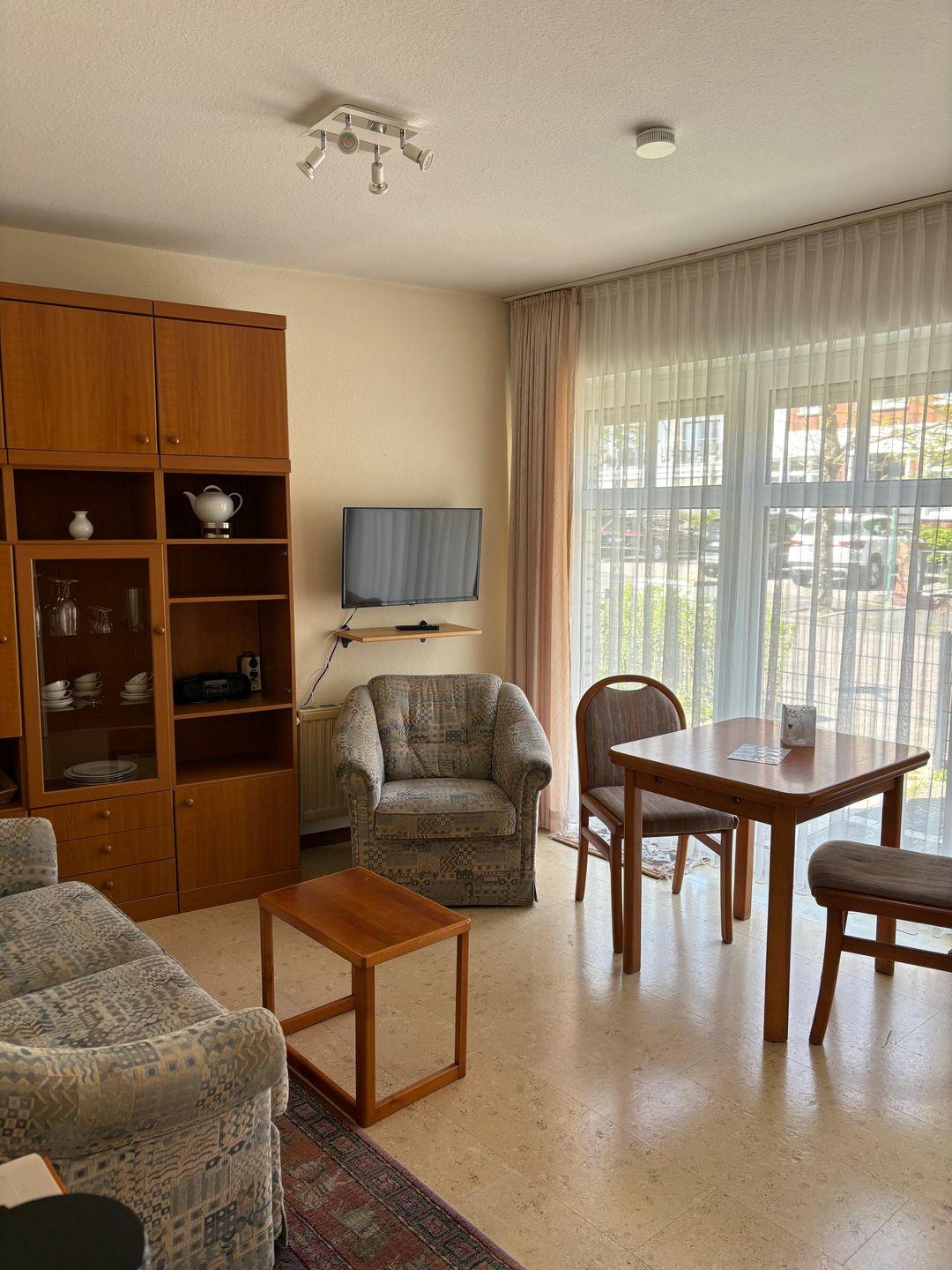 Das kleine 1-Raum-Appartement befindet sich zentral. Es ist im Erdgeschoss. Die Wohnung ist ausgestattet mit Schrankbetten. Sie hat eine kleine Terrasse, wo Sie am Nachmittag und am Abend die Sonne genießen können. Ebenso verfügt die Wohnung über eine kleine Kochnische mit 2-Platten-Herd und Kühlschrank. Dusche und WC ist auch vorhanden. Die Wohnung besitzt WLAN. Das Appartement ist ca. 5 Minutten vom Kurplatz entfernt.