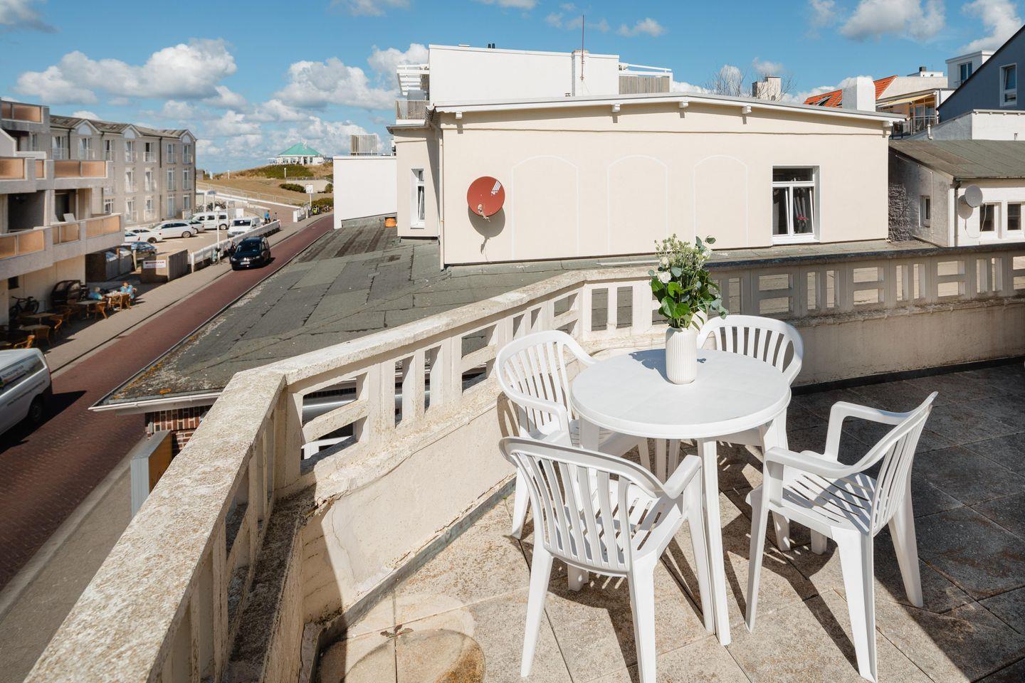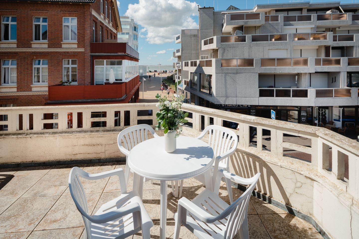 Ferienwohnung 1 im Haus Tiemann mit großzügigem Eck-Balkon, teilweise Meerblick.