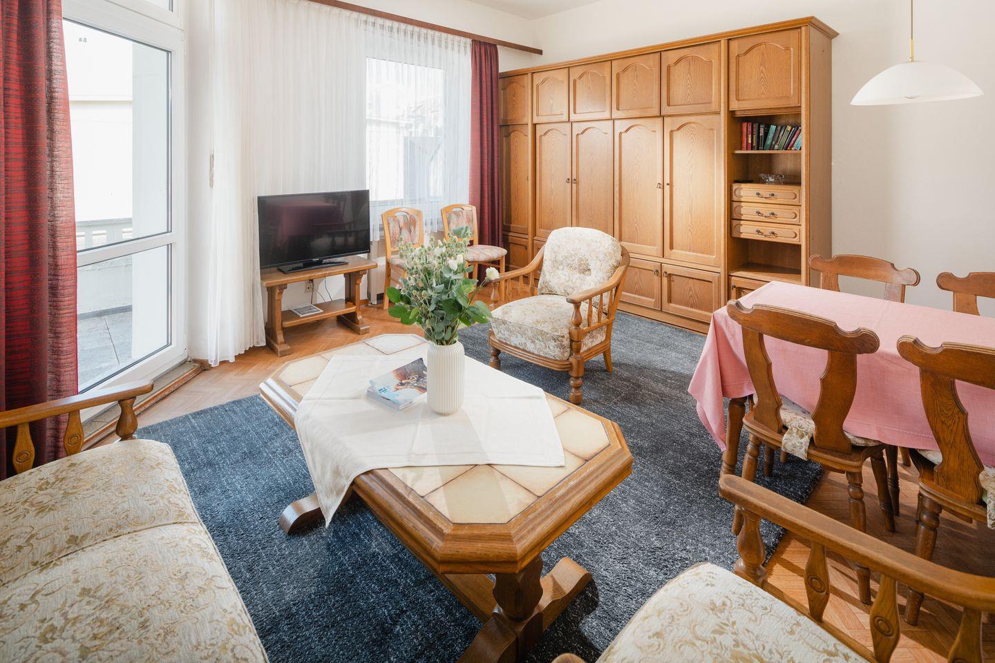 Ferienwohnung 1 im Haus Tiemann. Haus Tiemann, liegt zentral in unmittelbarer Nähe der Strandpromenade und Strandkorbwiese. Das Kur - und Einkaufszentrum, das BADEHAUS und die Fußgängerzone sind in wenigen Minuten zu Fuß zu erreichen. Das Haus hat 9 Wohnungen und ist ganzjährig geöffnet. Familienfreundliche Ferienwohnungen. Die einzelnen Wohnungen sind unterschiedlich eingerichtet. Tiere können nicht mitgebracht werden