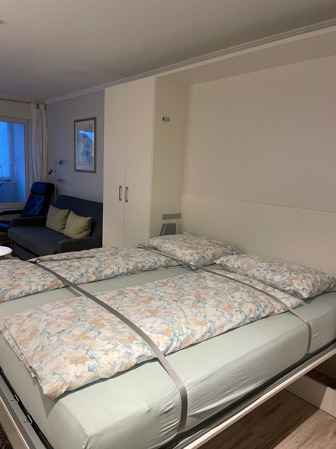 Haus Seelord Wohnung 38 ist eine beschauliche ca 34m² Ferienwohnung, für bis zu 2 Gäste – wir freuen uns auf Ihren Besuch! Die Ferienwohnung wurde im Jahr 2023 komplett neu saniert und ist ausgestattet mit einem modernen Schrankbett, Küche und Dusche/WC. Ebenso ist eine Schlafcouch vorhanden falls Sie getrennt schlafen möchten. Die Wohnung befindet sich in der 2. Etage und ist mit Aufzug zur erreiche. Sie haben Aussicht zur Stadtseite. Von der zentralen Unterkunft erreichen Sie in nur wenigen Minuten die Stadt, sowie auch den Strand. Netto, EDEKA und eine Metzgerei mit Fertiggerichten befindet sich direkt in der Nähe. Waschmaschine und Trockner mit Münzeinwurf sind ebenfalls im Haus vorhanden. Im Keller befinden sich 2 Fahrräder und stehen Ihnen kostenfrei zur Verfügung, eigene Fahrräder können dort gerne abgestellt werden.