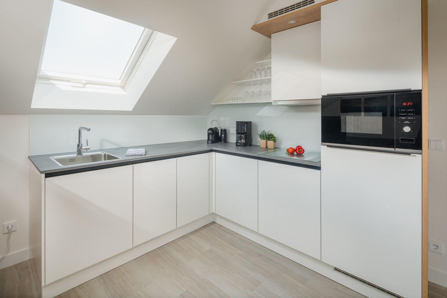 Haupthaus: Die Wohnung H11 liegt im 3. Stock des Haupthauses, welches über einen Aufzug verfügt. Zur Ausstattung der Küche gehören unter anderem ein 4-Platten-Herd sowie eine Mikrowelle, ein Geschirrspüler, eine Filterkaffeemaschine und eine Kapselkaffeemaschine. Fahrräder der Hausgäste können im Innenhof abgestellt werden; Waschmaschine und Wäschetrockner stehen zur gemeinschaftlichen Nutzung im Untergeschoss bereit.