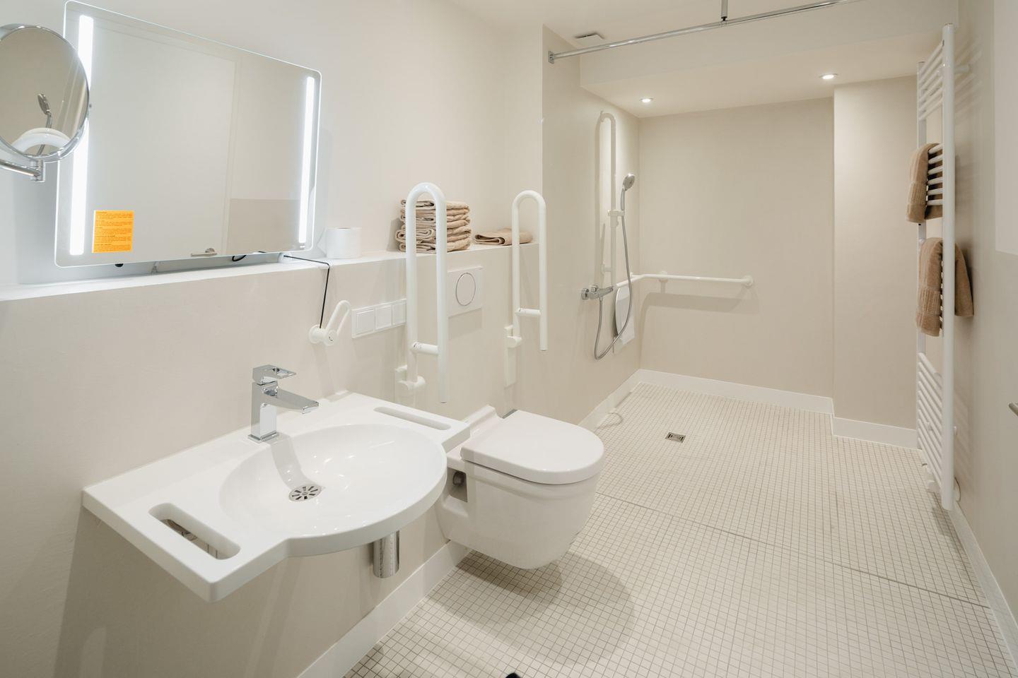 Souterrain barrierearm: Die Wohnung S1 liegt im Souterrain, ist ebenerdig zugänglich und durch die extrabreiten Türen für Rollstuhlfahrer sehr gut geeignet. Zur Ausstattung der Küche gehören unter anderem ein 2-Platten-Herd sowie eine Mikrowelle, ein Geschirrspüler, eine Filterkaffeemaschine und eine Kapselkaffeemaschine. Fahrräder der Hausgäste können im Innenhof abgestellt werden; Waschmaschine und Wäschetrockner stehen zur gemeinschaftlichen Nutzung im Untergeschoss bereit.