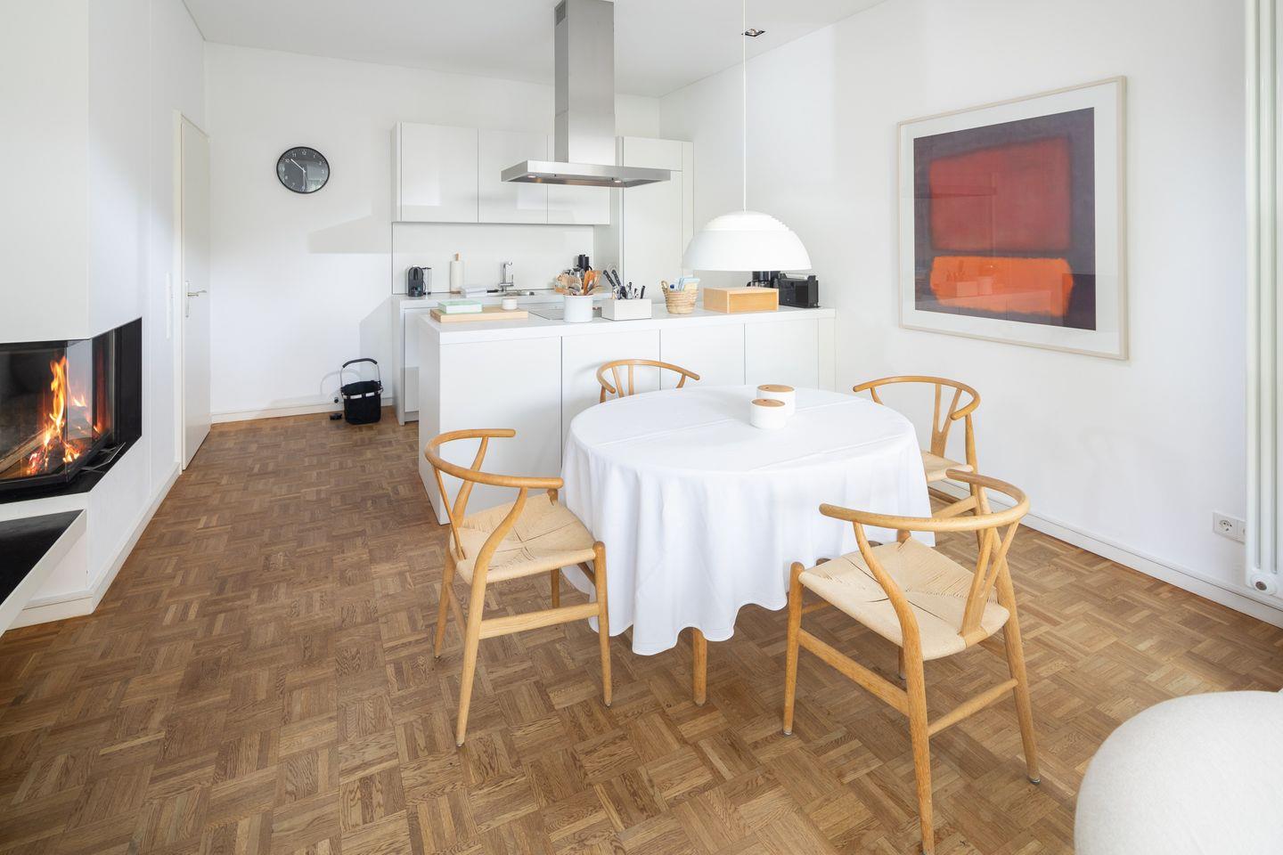 Der großzügige Wohnbereich lädt zum Verweilen ein und verfügt über eine offene Küche, einen Essbereich und einen einladenden Kamin, der für wohlige Atmosphäre sorgt. Die hochwertige gemütliche Einrichtung schafft eine warme und einladende Atmosphäre, in der Sie sich sofort wie zu Hause fühlen werden.