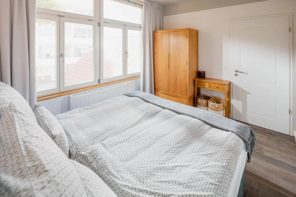 Die 3-Raum-Ferienwohnung in der Villa Alexander (ca. 65 qm²) verfügt über ein separates Schlafzimmer mit Doppelbett, eines mit kleinem Doppelbett (160x200cm), Wohnzimmer mit vollständig eingerichteter Küchenzeile sowie Badezimmer mit Dusche/WC. Gemeinschaftsterrasse auf der Veranda.