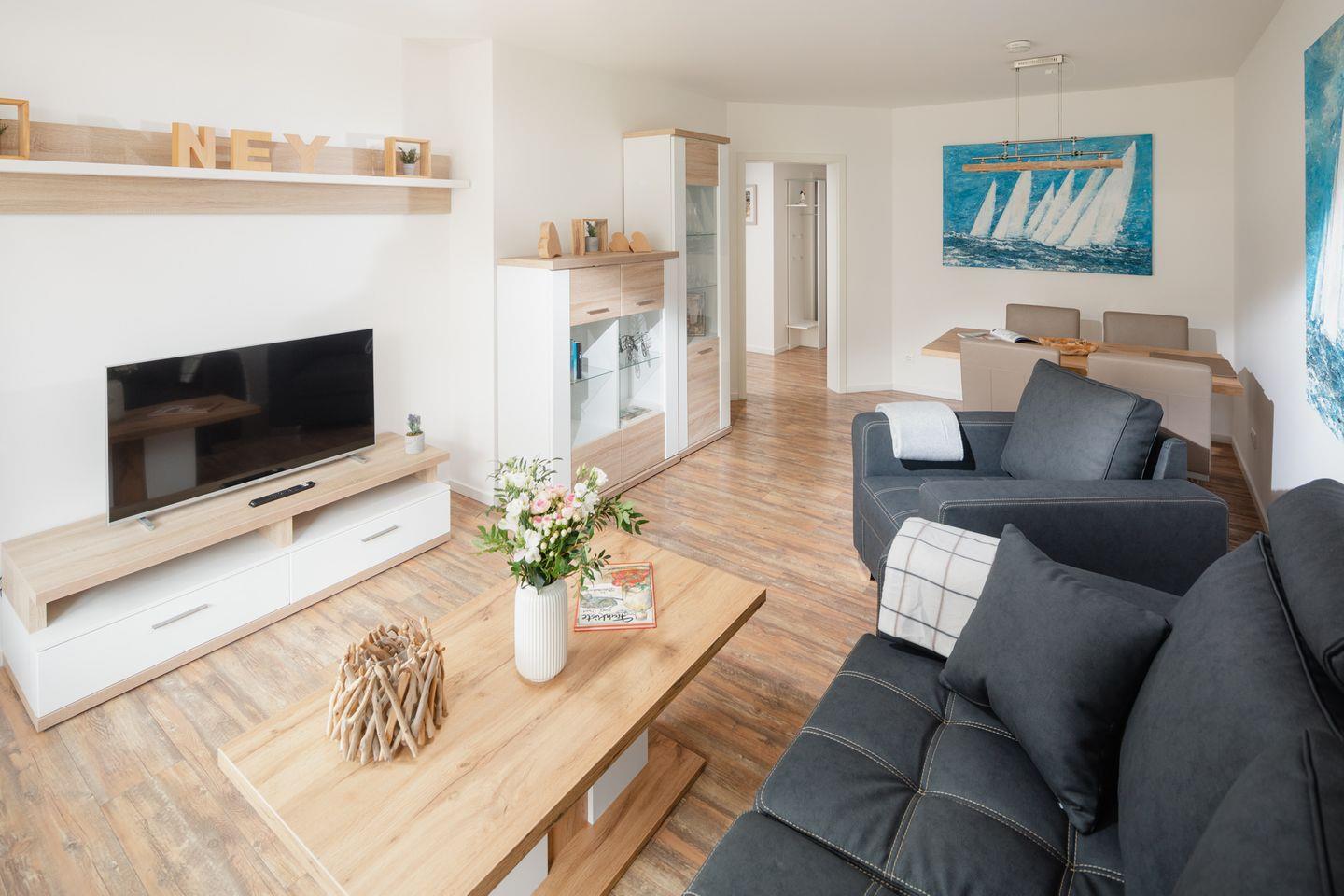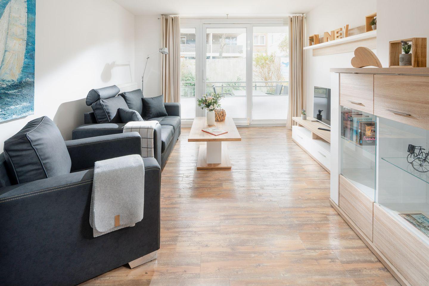 Das Apartment verfügt über ein gemütliches Wohnzimmer, ideal zum Entspannen nach einem Tag voller Entdeckungen. Die gut ausgestattete Küche mit Ceranfeld, Mikrowelle und Spülmaschine ermöglicht Ihnen, Ihre Lieblingsgerichte auch im Urlaub zuzubereiten. Ein schöner Balkon lädt zum Verweilen im Freien ein.
