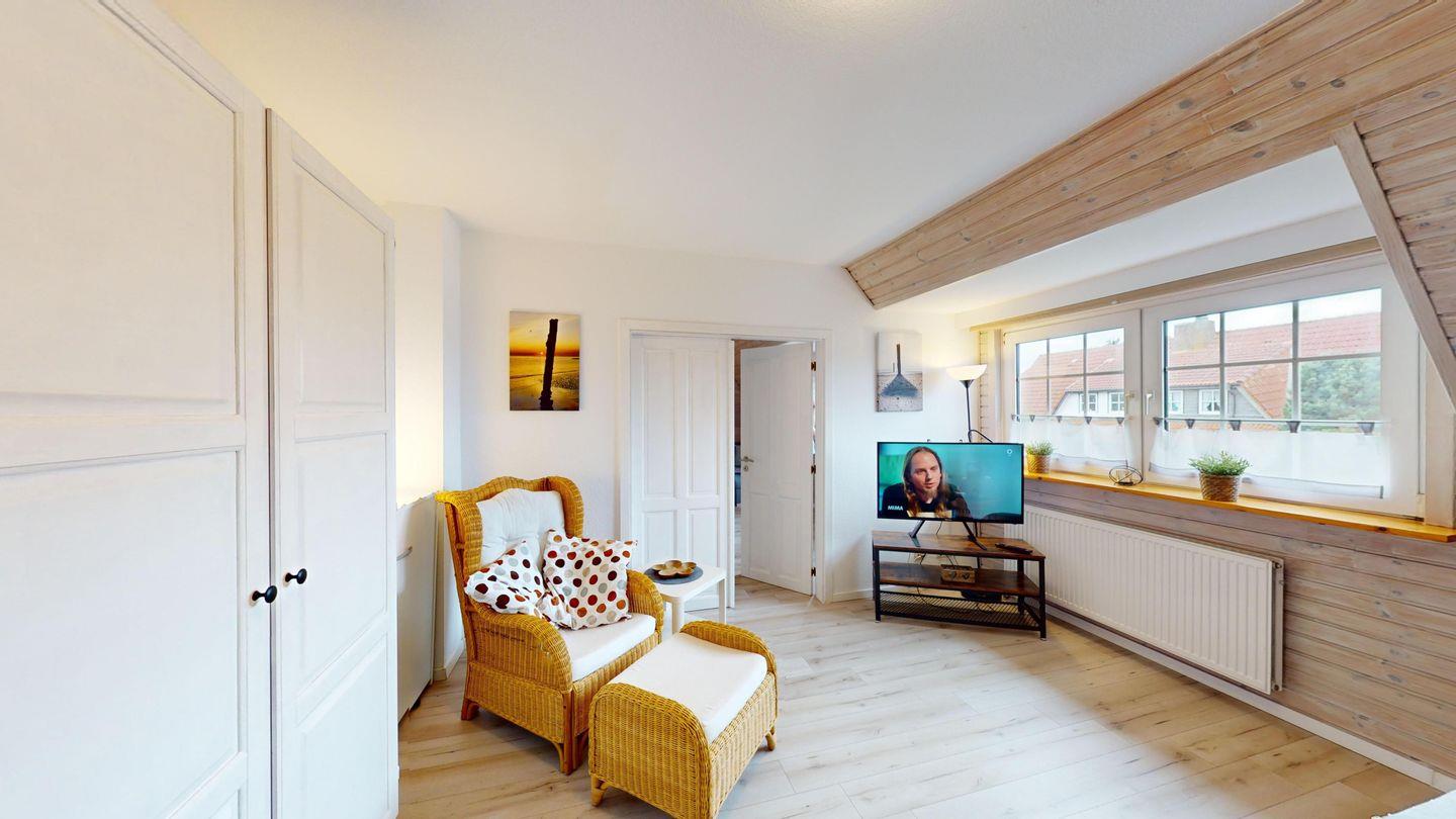 Die Ferienwohnung "Süderdün Sophie" befindet sich im ersten Geschoss und ist über eine Treppe erreichbar. Das Haus liegt "Up Süderdün". Die Wohnung bietet auf ca. 65 Quadratmetern Platz für bis zu drei Personen. Die Wohnung eignet sich gut für Familien und Freunde. Der Weststrand ist nur einen kurzen Fußweg entfernt. Auch der Fährhafen sowie die kleine Innenstadt mit ihren Geschäften und Cafés sind in wenigen Minuten erreichbar.