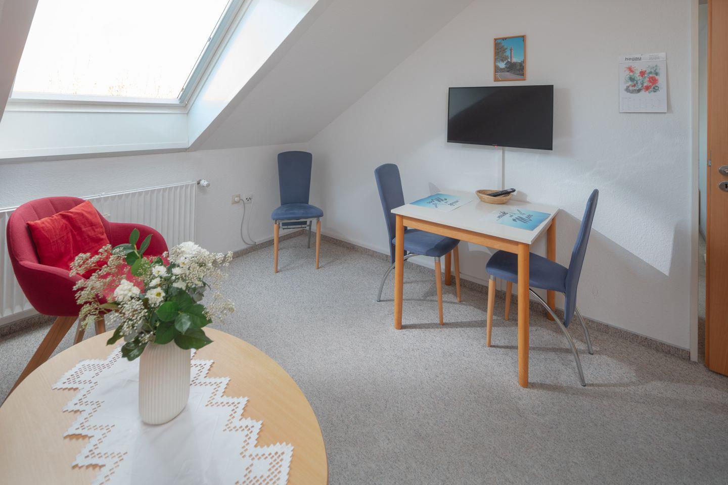 Die Ferienwohnung befindet sich im 2. Stock und besticht durch eine offene und einladende Raumgestaltung. Das Schlafzimmer ist mit bequemen Betten ausgestattet. Im Wohnzimmer finden Sie ein gemütliches Sofa, einen TV sowie einen Essbereich, an dem Sie die frisch zubereiteten Mahlzeiten genießen können. Die voll ausgestattete Küche verfügt über moderne Geräte, darunter ein Cerankochfeld, Kühlschrank, Kaffeemaschine, Toaster und Wasserkocher – perfekt, um Ihre Lieblingsgerichte zu kochen.