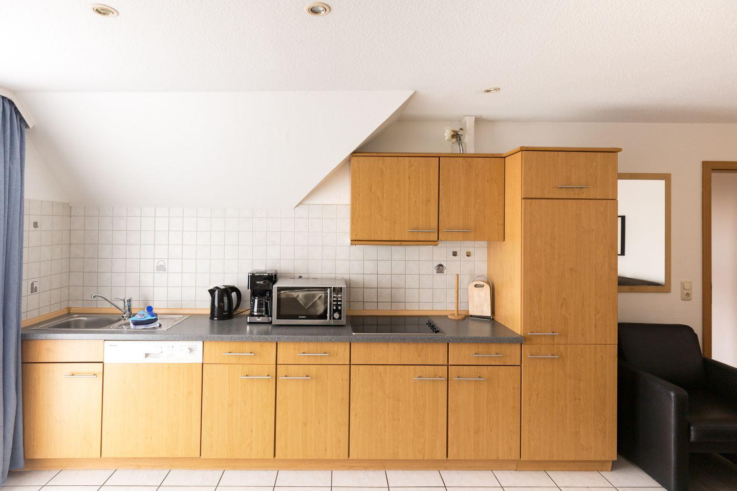 Starte den Tag mit einem Frühstück auf deinem eigenen Balkon und genieße die frische Meeresbrise. Die moderne Kochnische ist voll ausgestattet mit Herd, Spülmaschine, Mikrowelle und Kaffeemaschine, damit du mühelos deine Lieblingsgerichte zubereiten kannst. Der einladende Essbereich lädt zu geselligen Abenden ein.